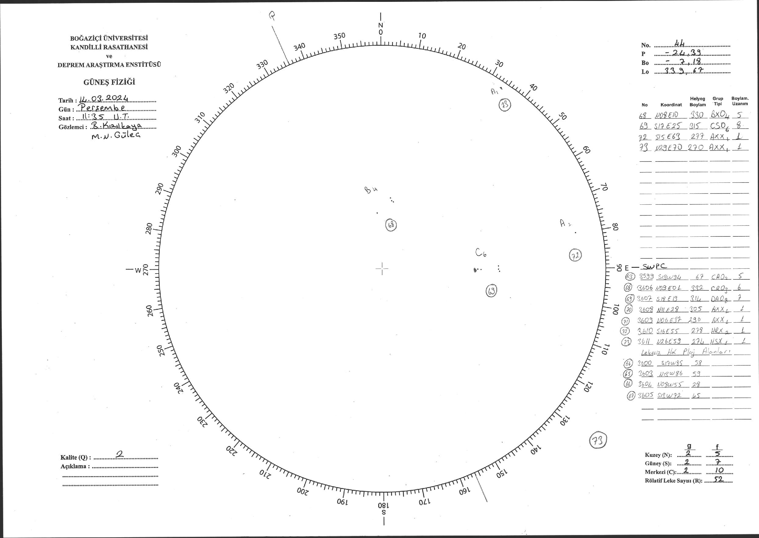 Güneş Lekesi Çizimi - 14.03.2024