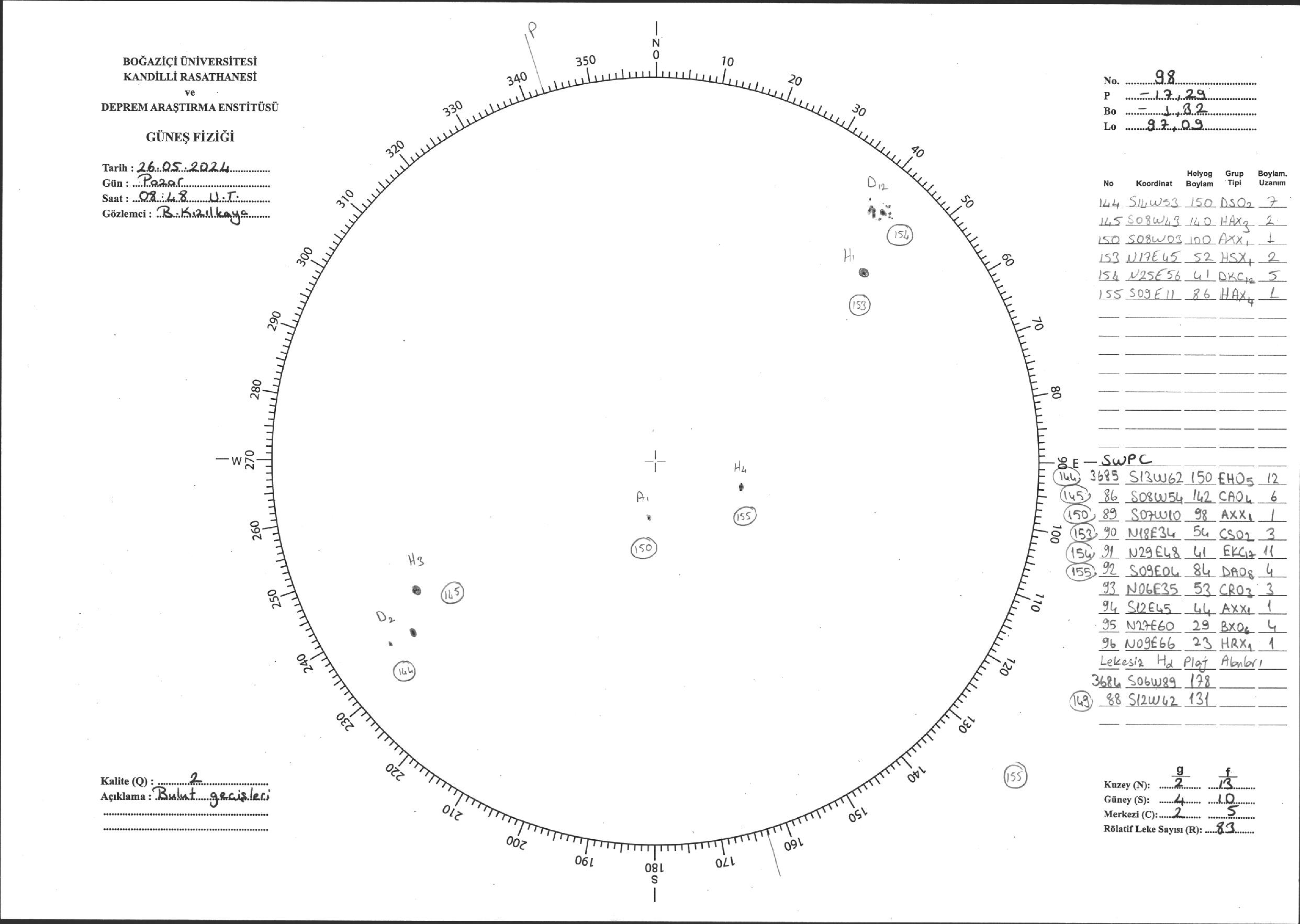Güneş Lekesi Çizimi - 26.05.2024