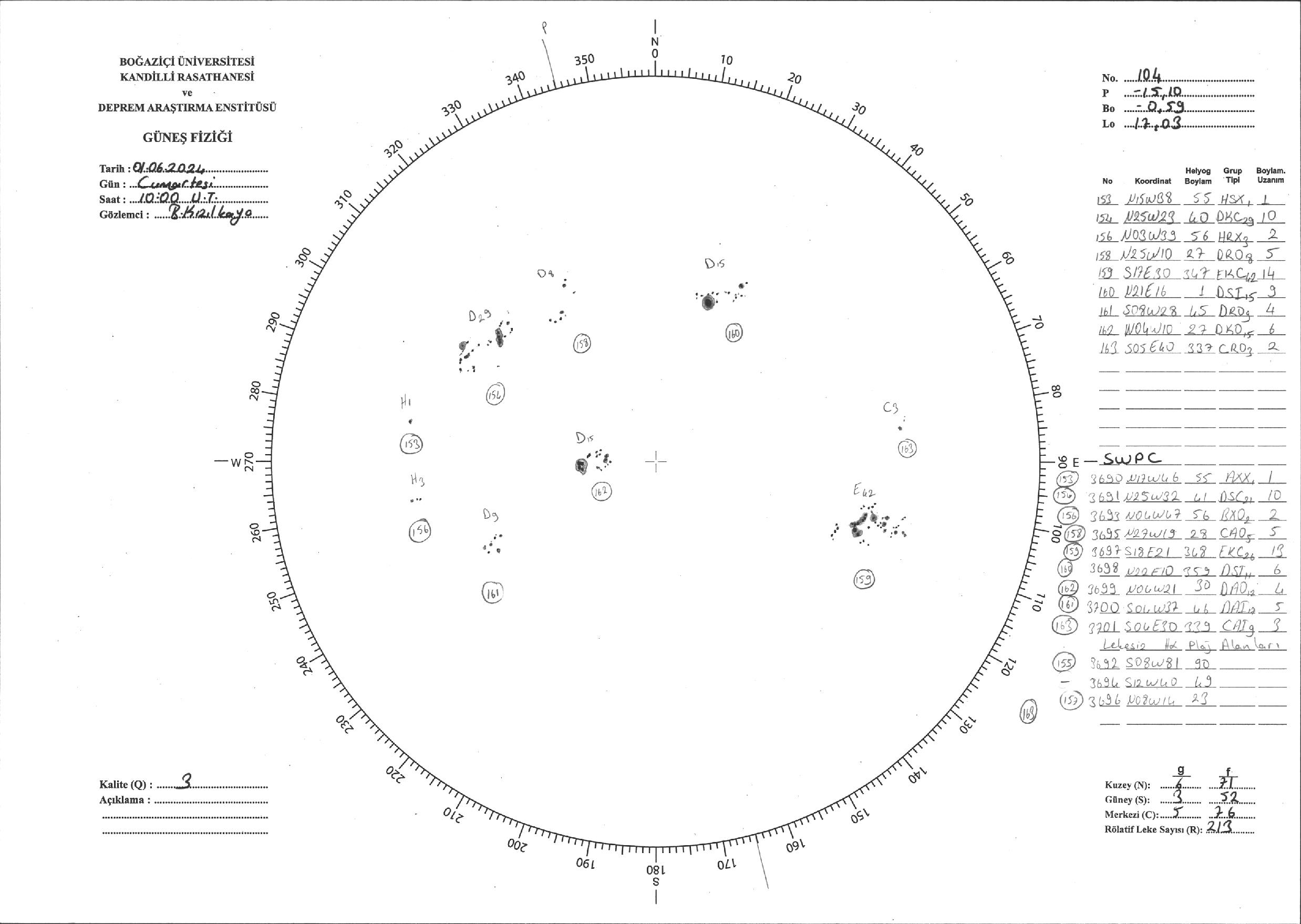 Güneş Lekesi Çizimi - 01.06.2024
