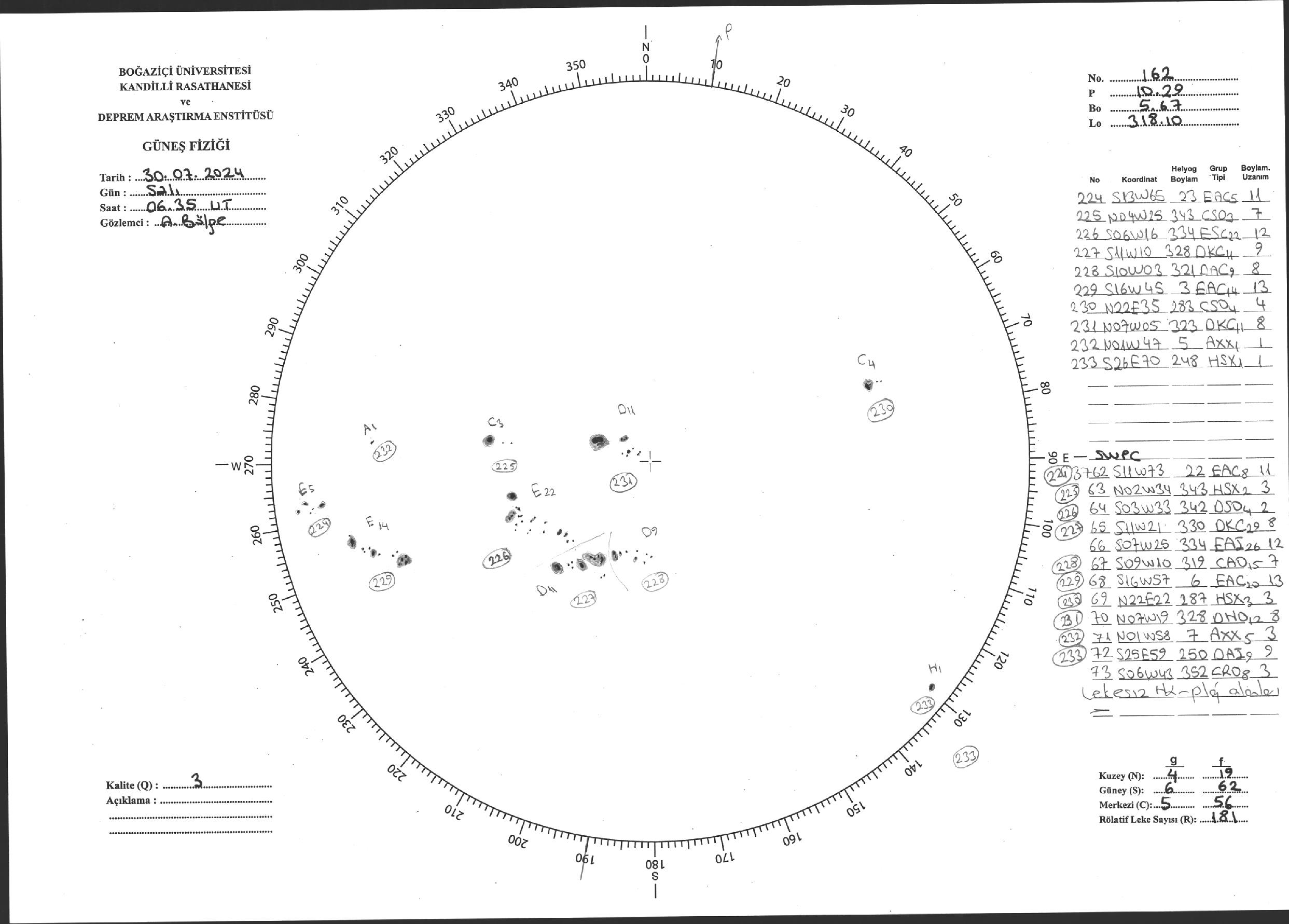 Güneş Lekesi Çizimi - 30.07.2024