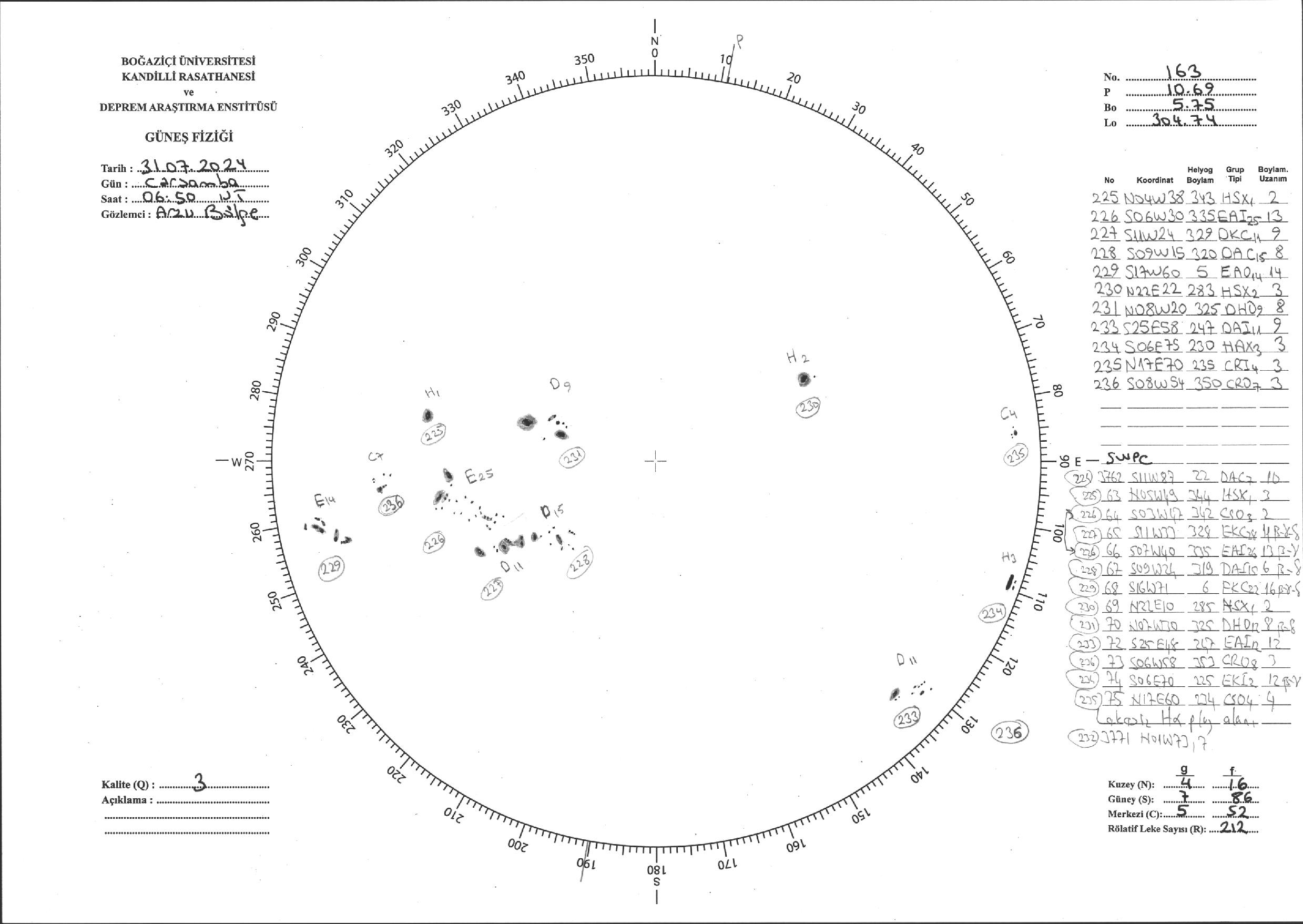 Güneş Lekesi Çizimi - 31.07.2024