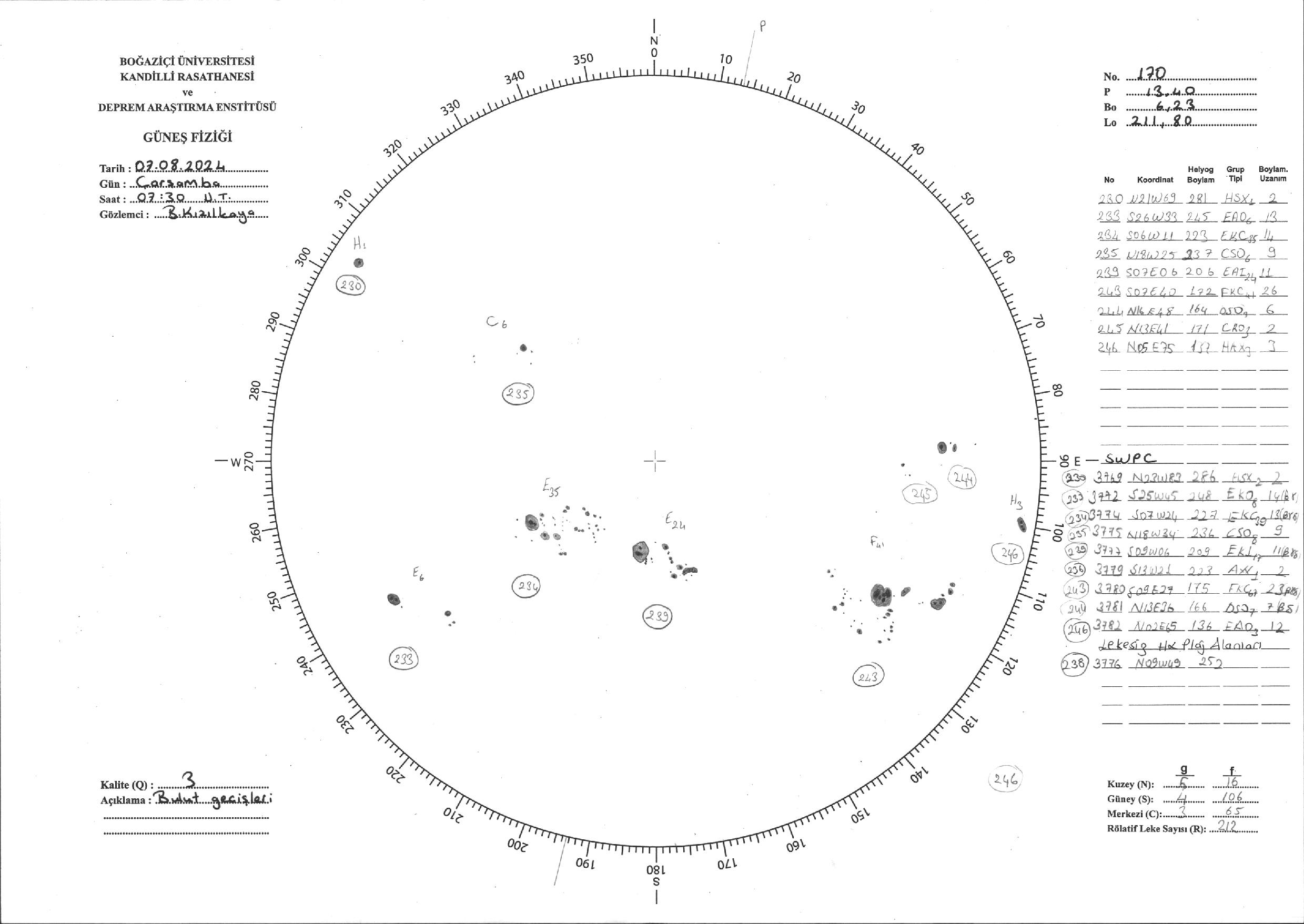 Güneş Lekesi Çizimi - 07.08.2024