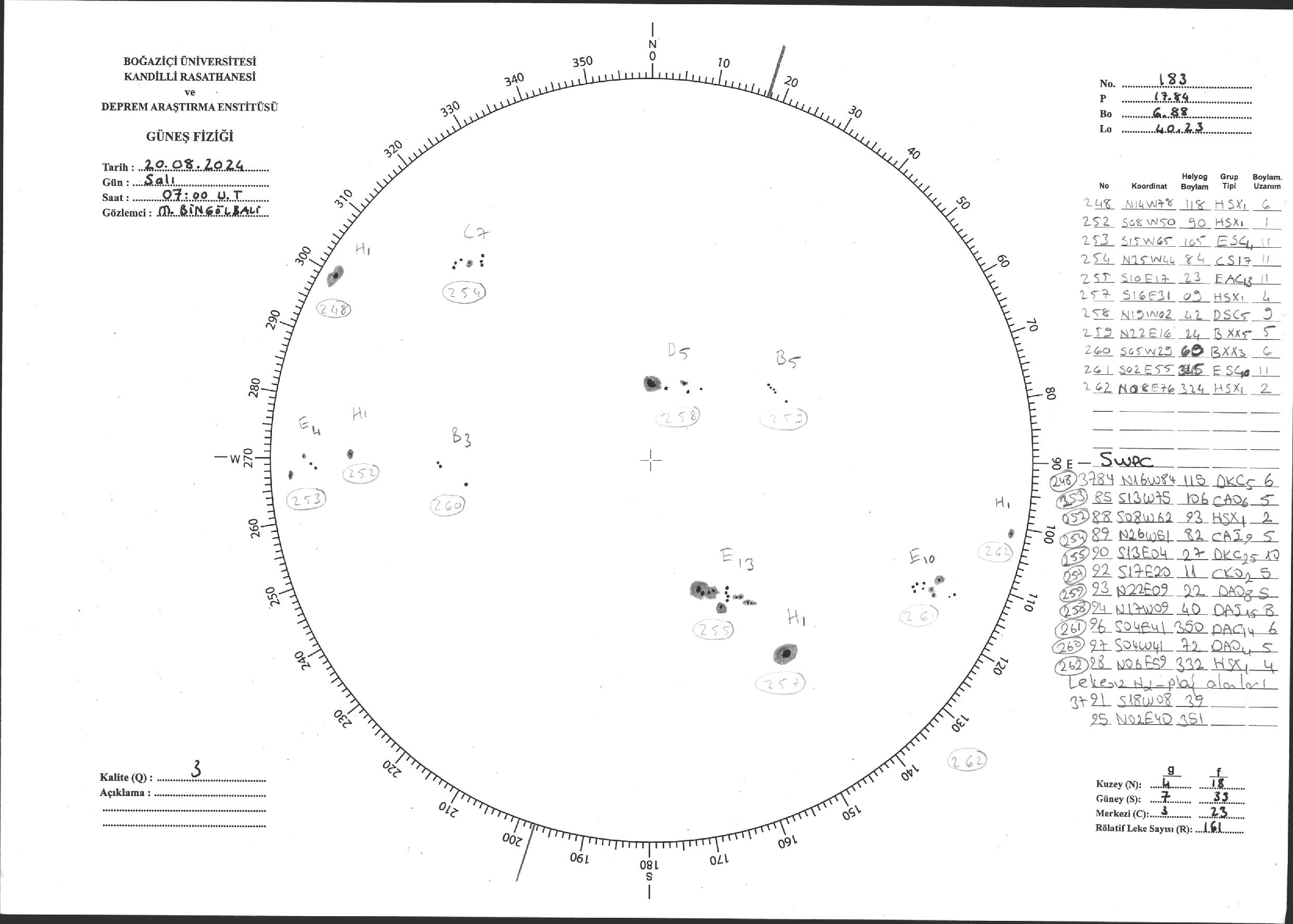 Güneş Lekesi Çizimi - 20.08.2024