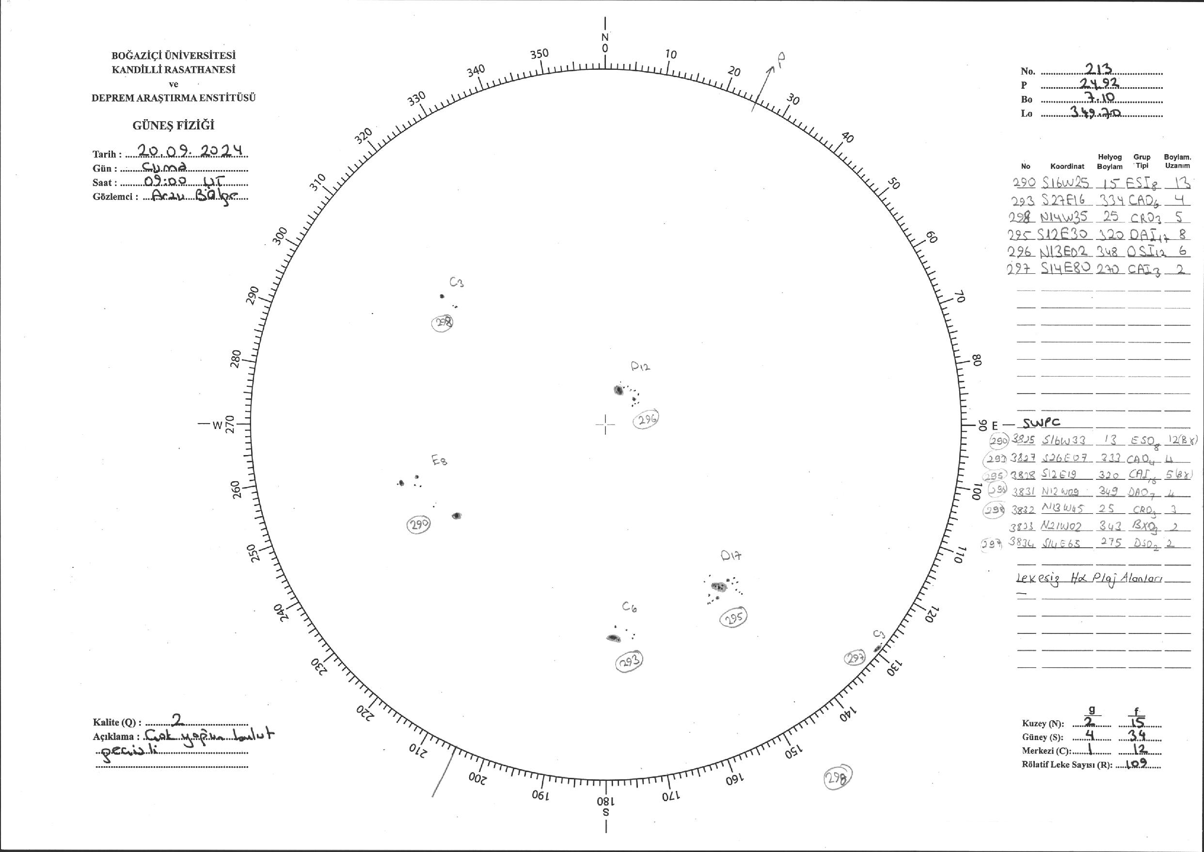 Güneş Lekesi Çizimi - 20.09.2024