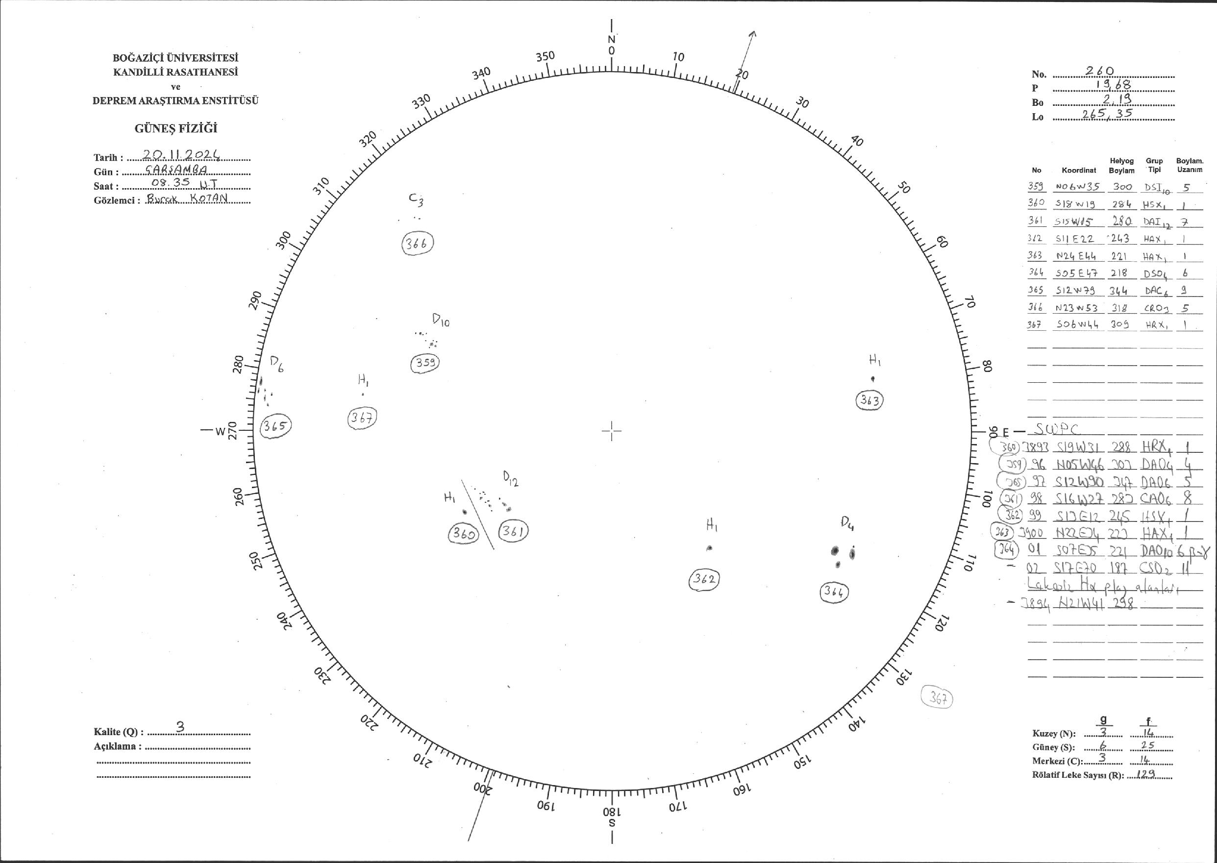 Güneş Lekesi Çizimi - 20.11.2024
