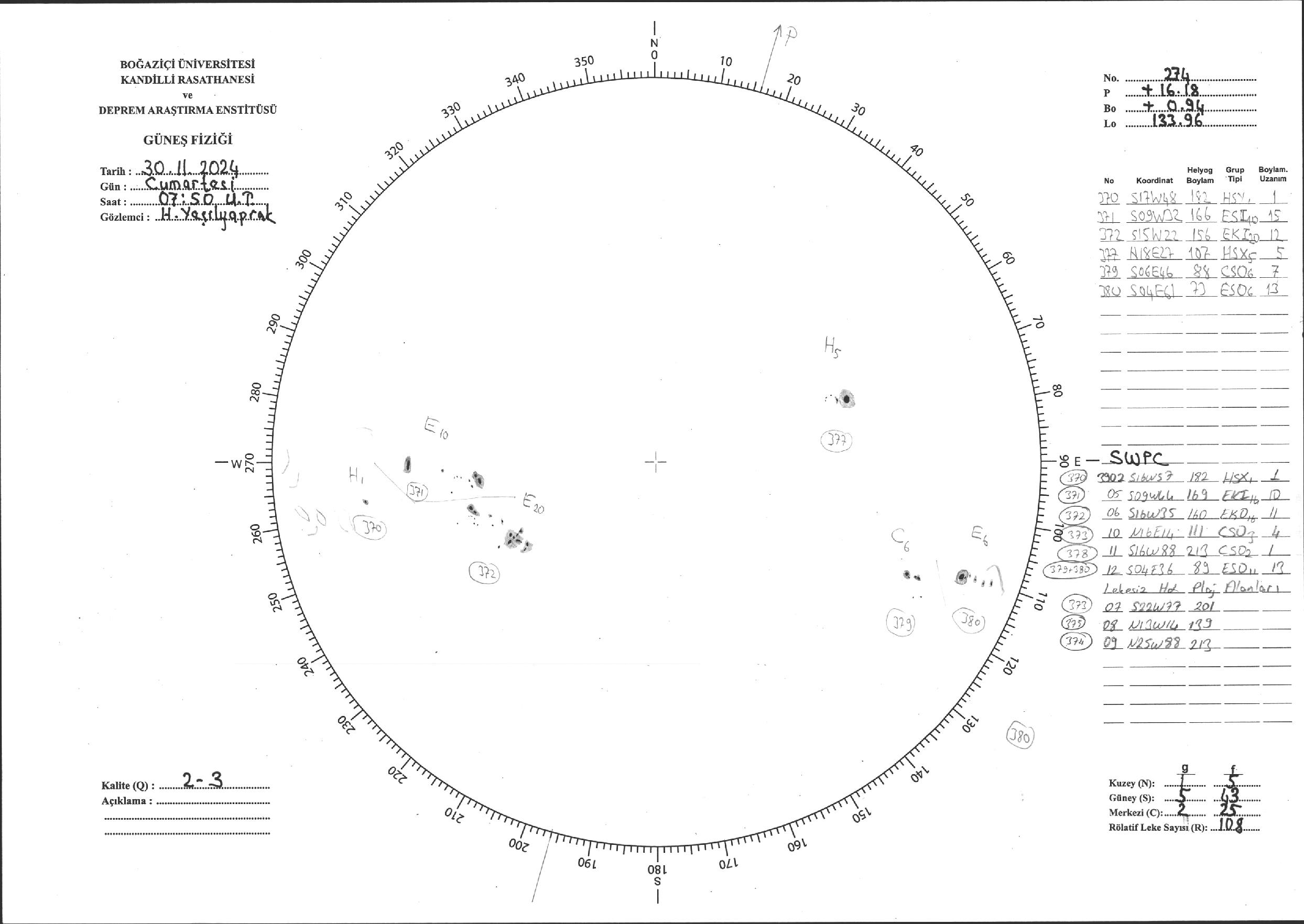 Güneş Lekesi Çizimi - 30.11.2024