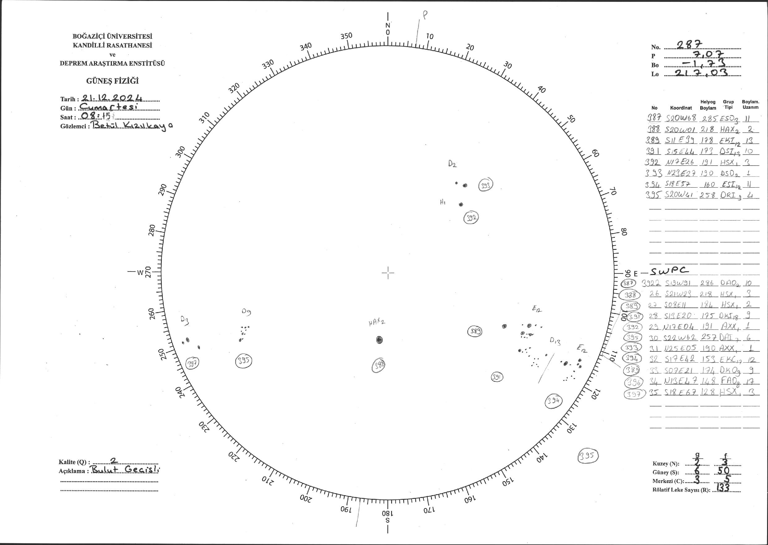 Güneş Lekesi Çizimi - 21.12.2024