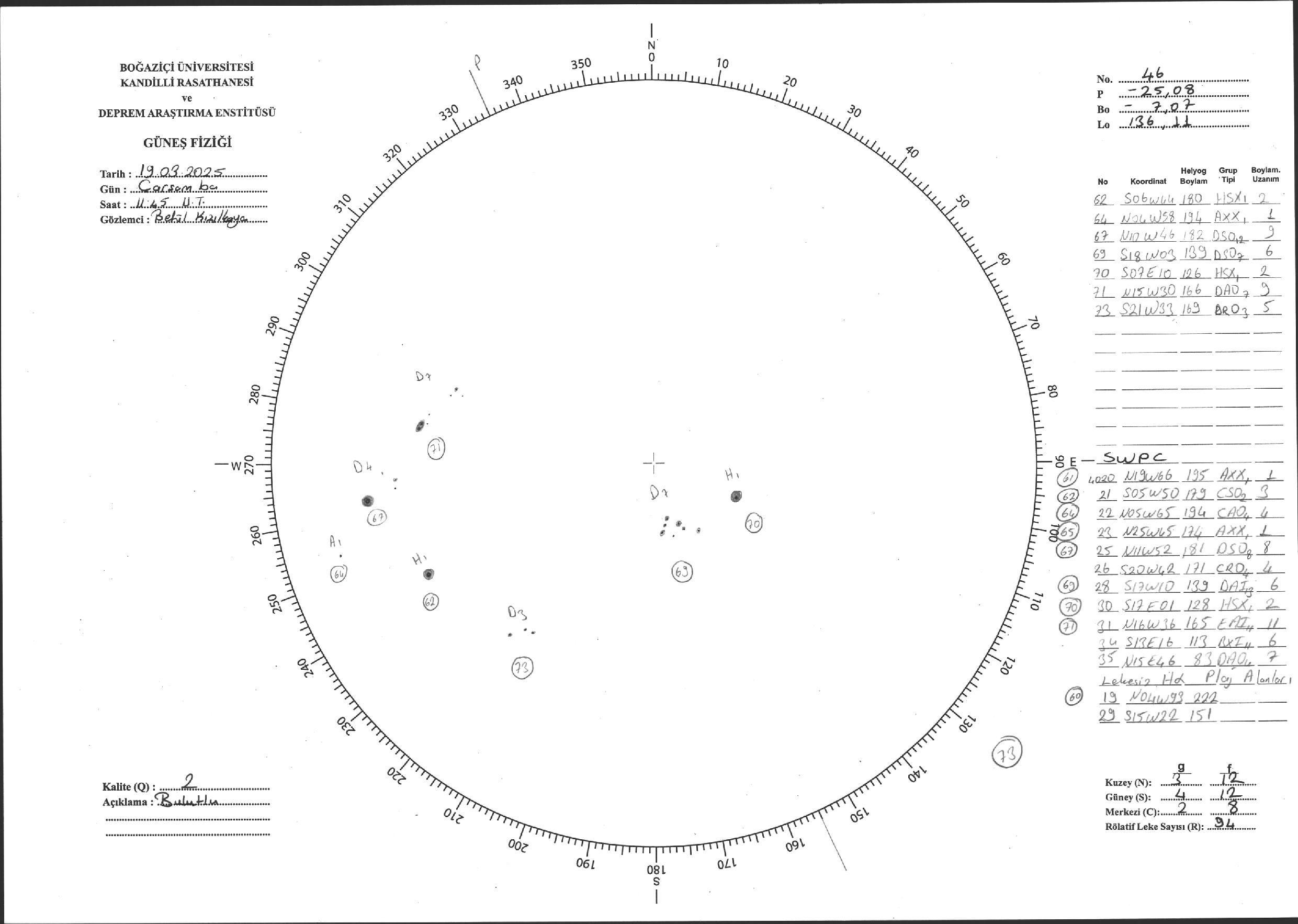 Güneş Lekesi Çizimi - 19.03.2025