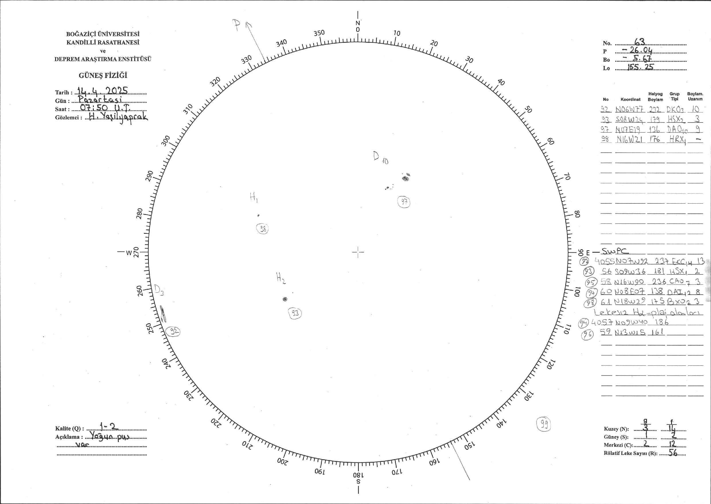 Güneş Lekesi Çizimi - 14.04.2025