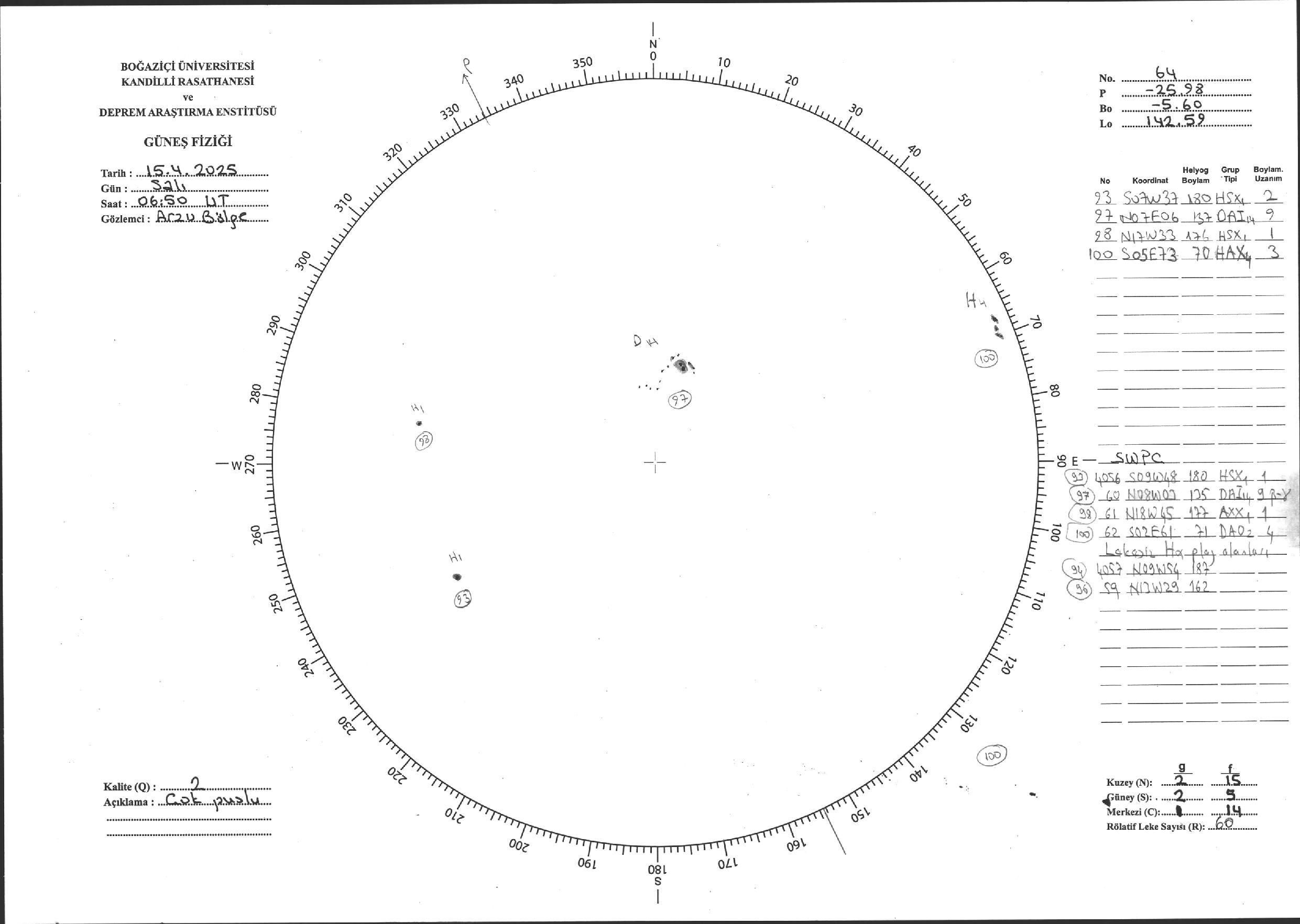 Güneş Lekesi Çizimi - 15.04.2025