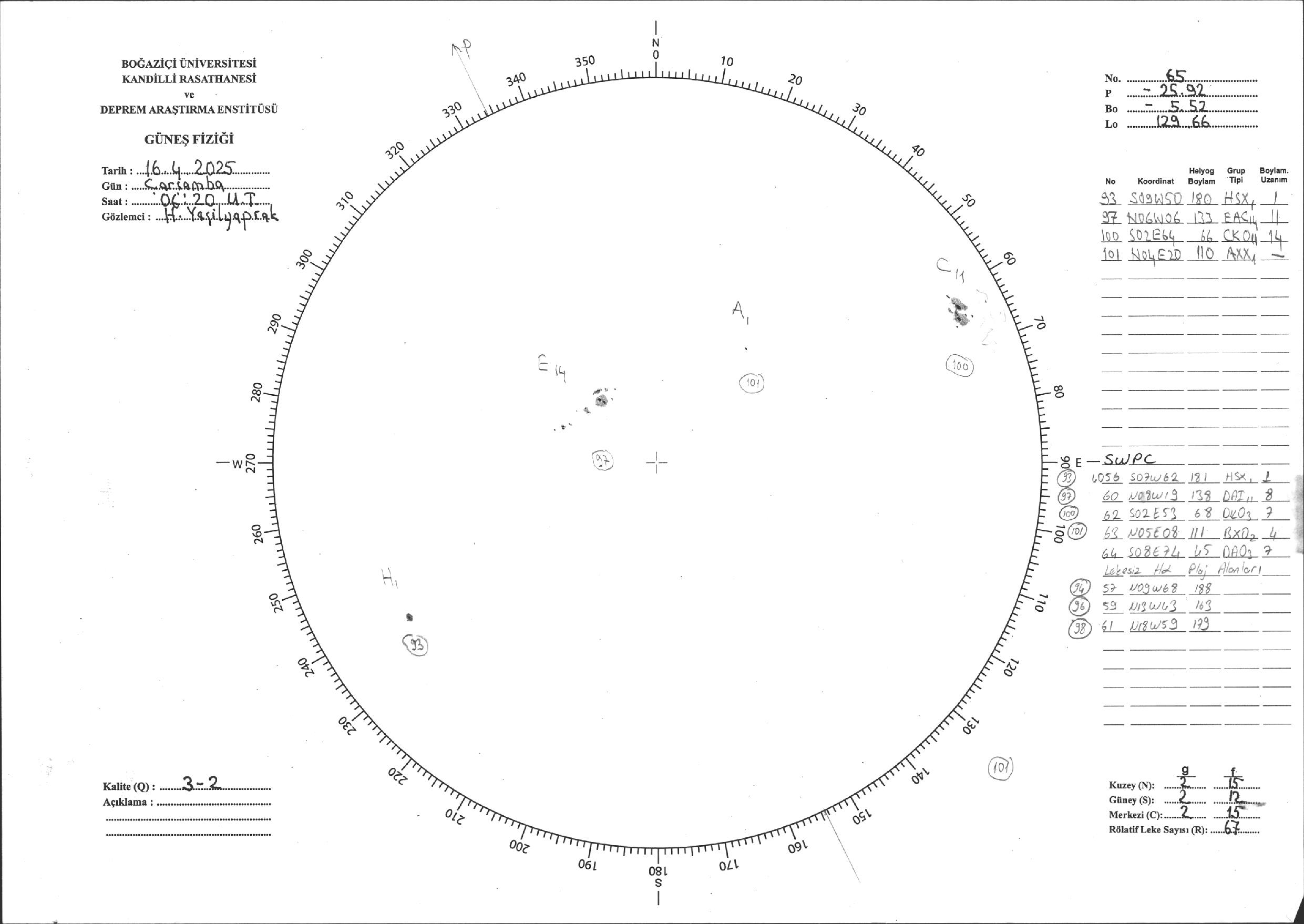 Güneş Lekesi Çizimi - 16.04.2025