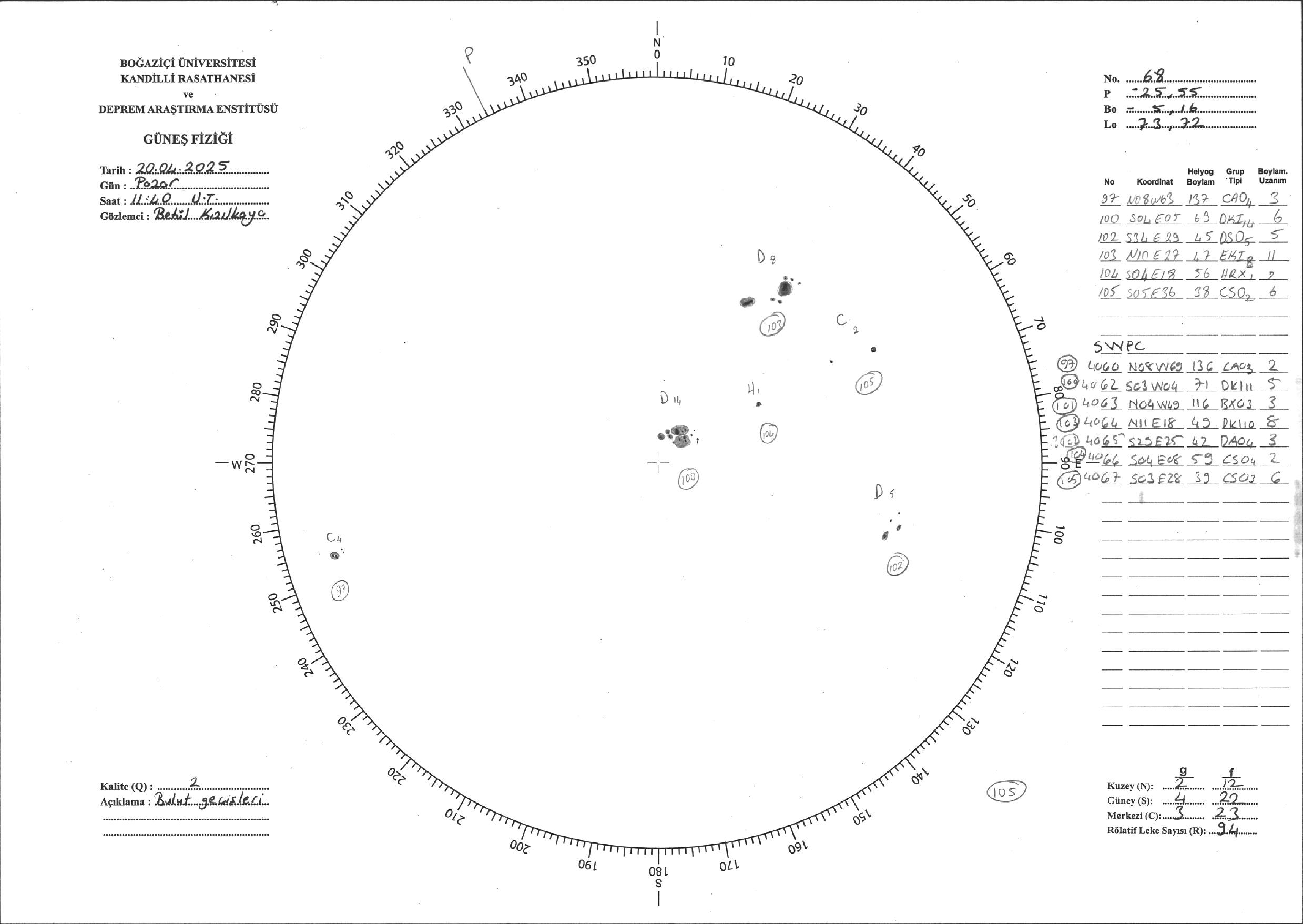 Güneş Lekesi Çizimi - 20.04.2025