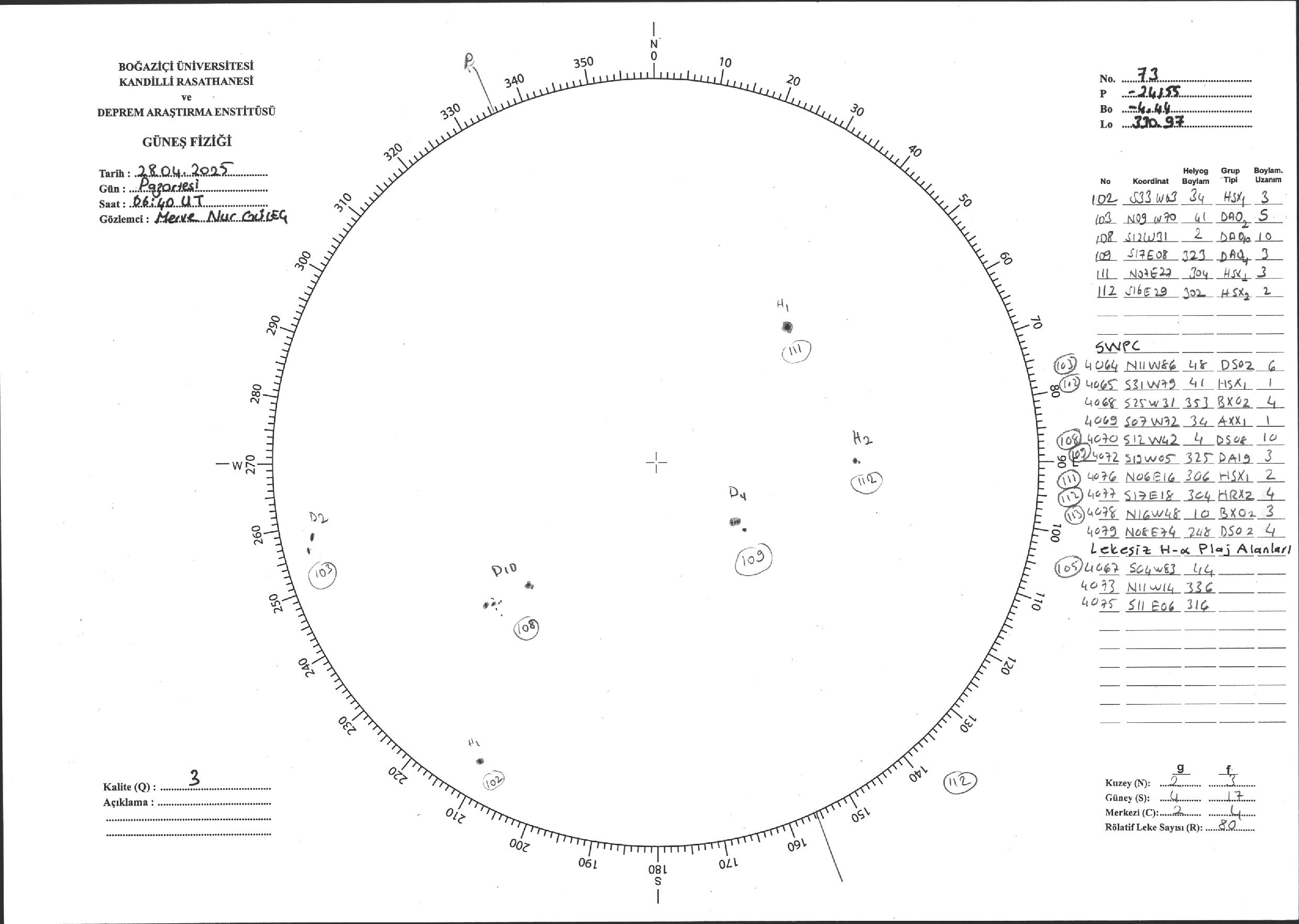 Güneş Lekesi Çizimi - 28.04.2025