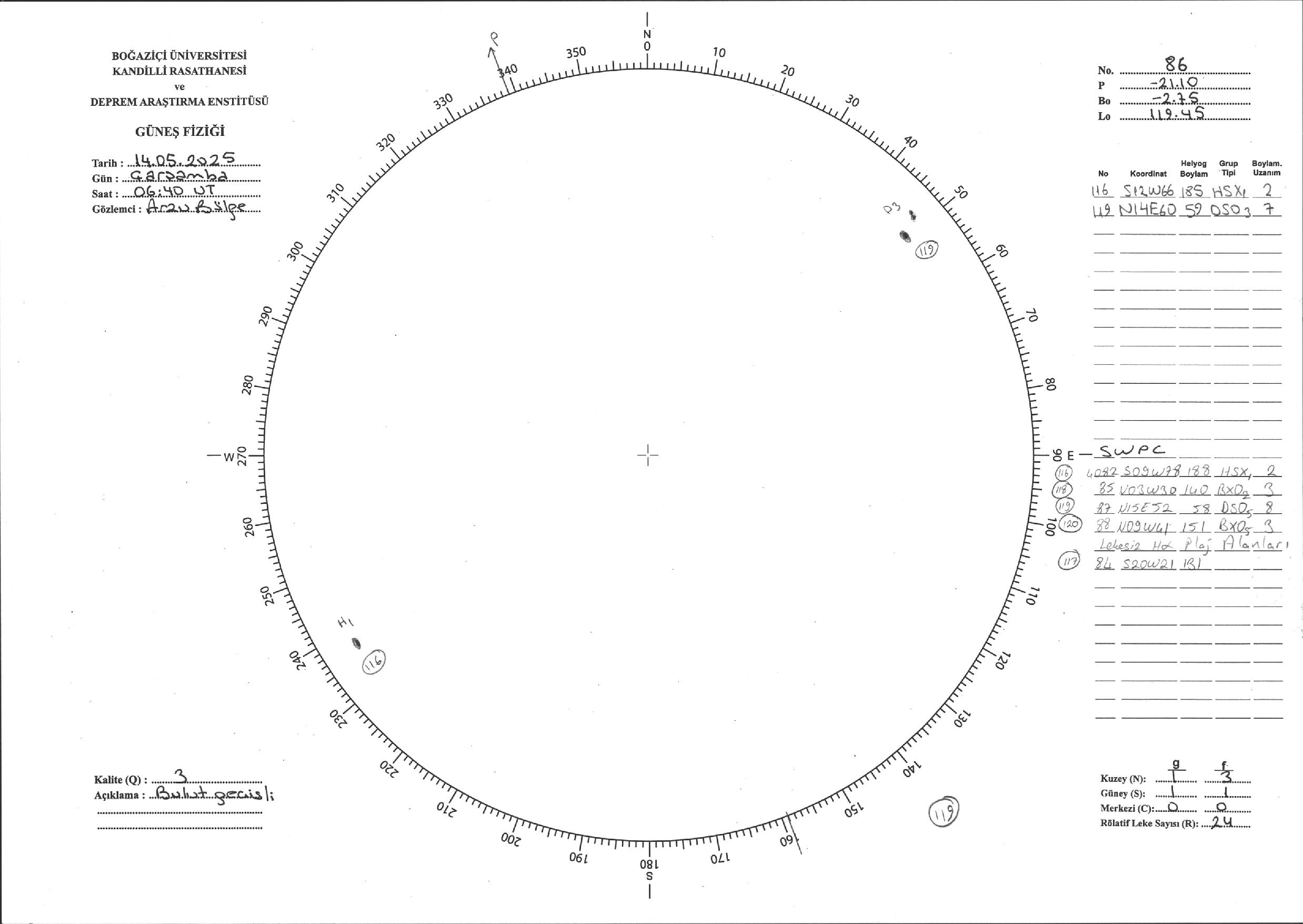 Güneş Lekesi Çizimi - 14.05.2025