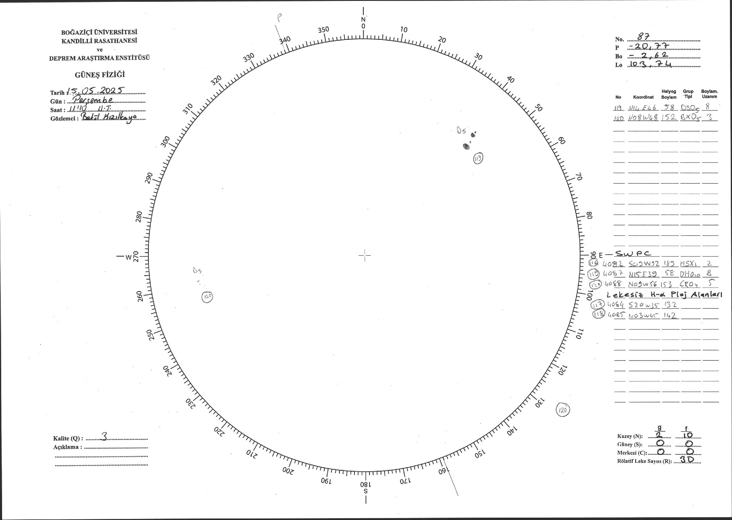 Güneş Lekesi Çizimi - 15.05.2025