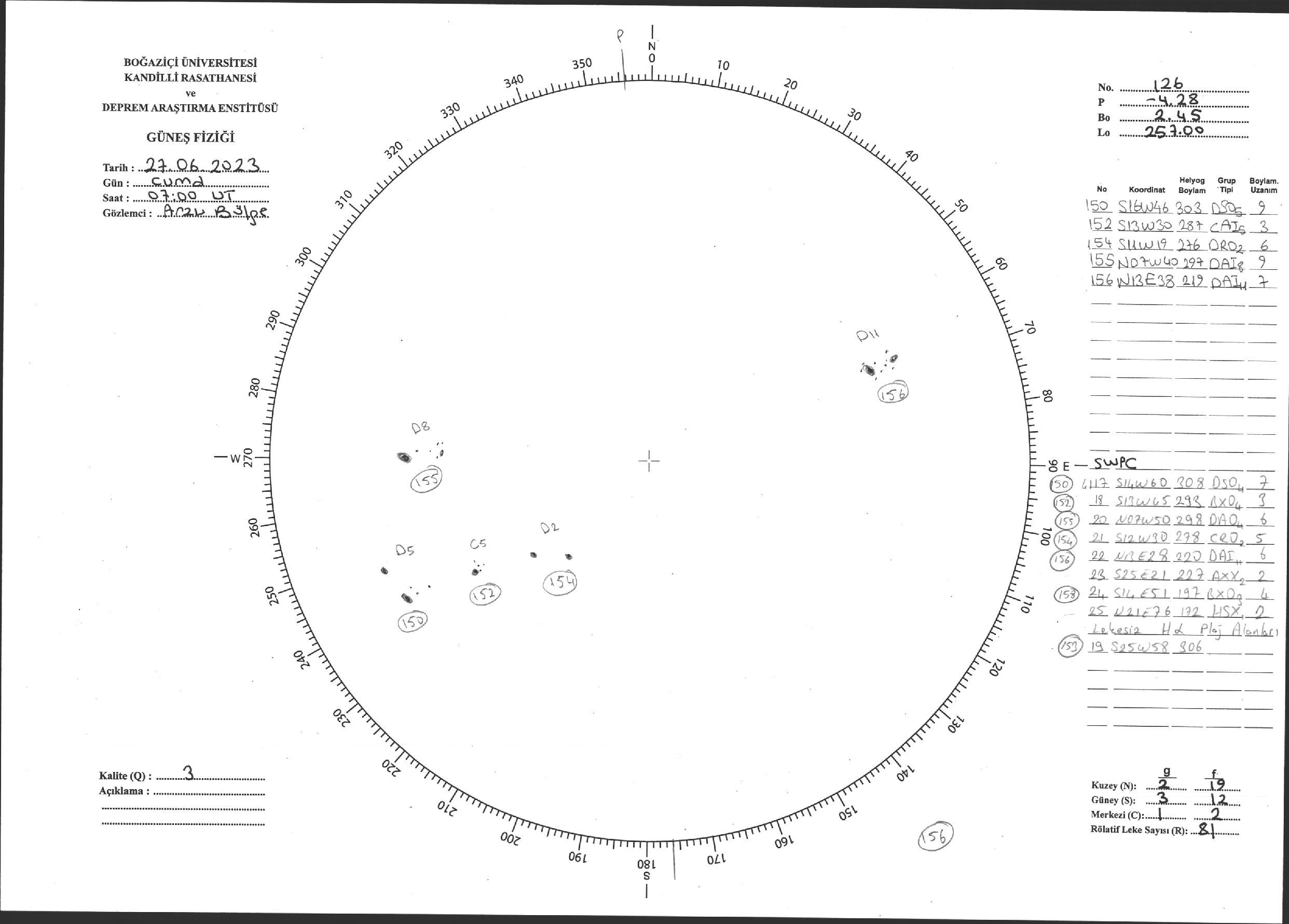 Güneş Lekesi Çizimi - 27.06.2025