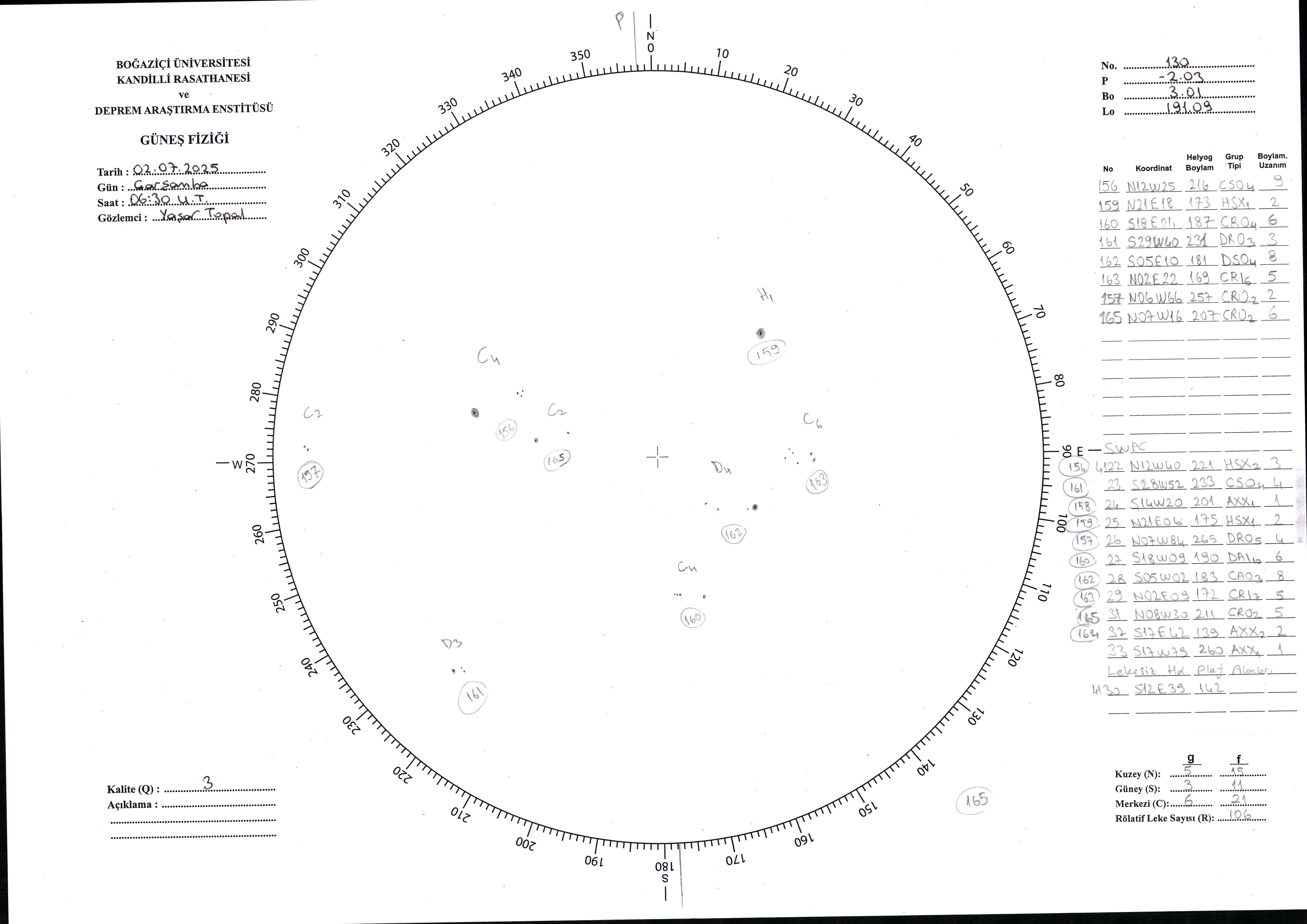 Güneş Lekesi Çizimi - 02.07.2025