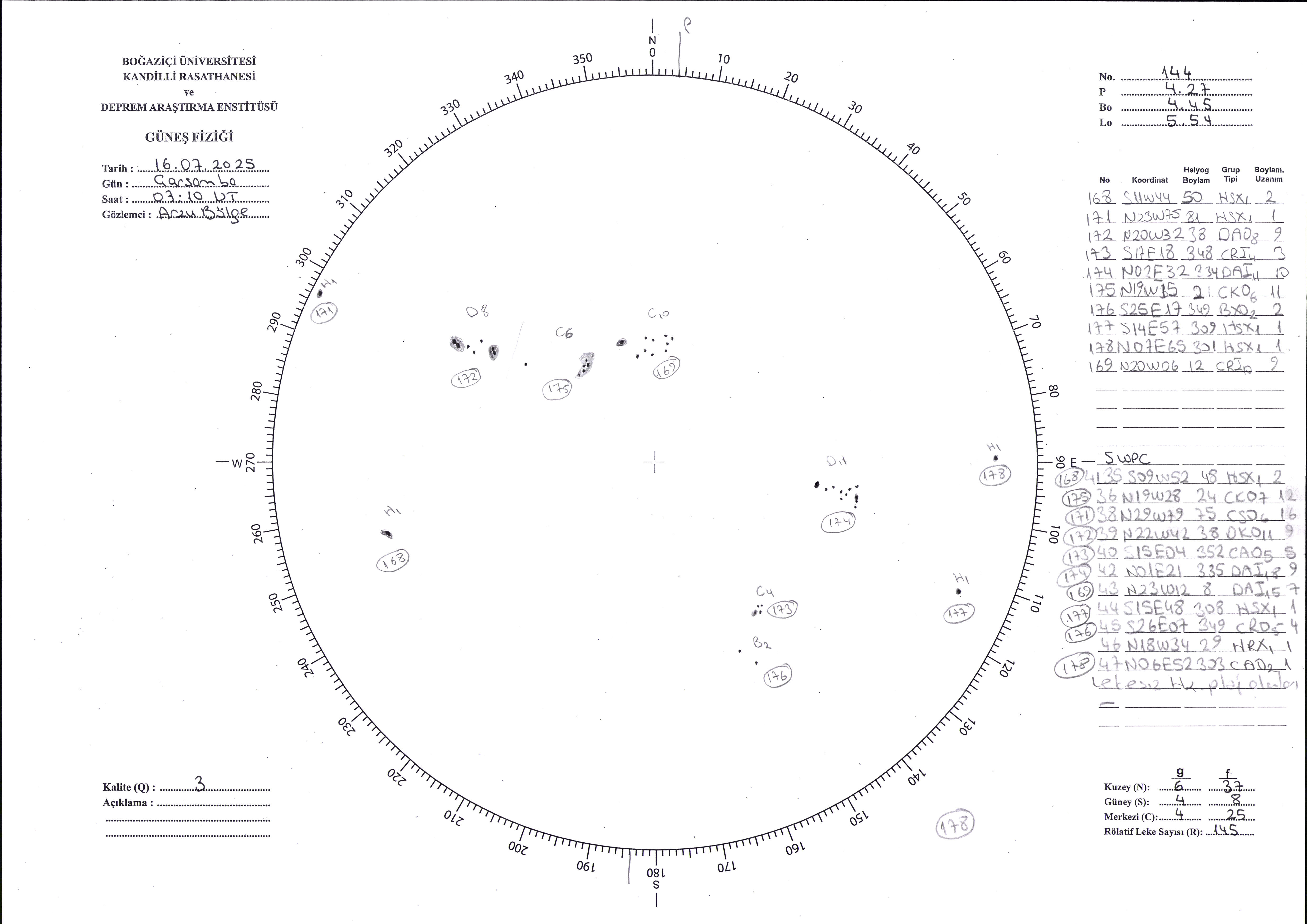 Güneş Lekesi Çizimi - 16.07.2025
