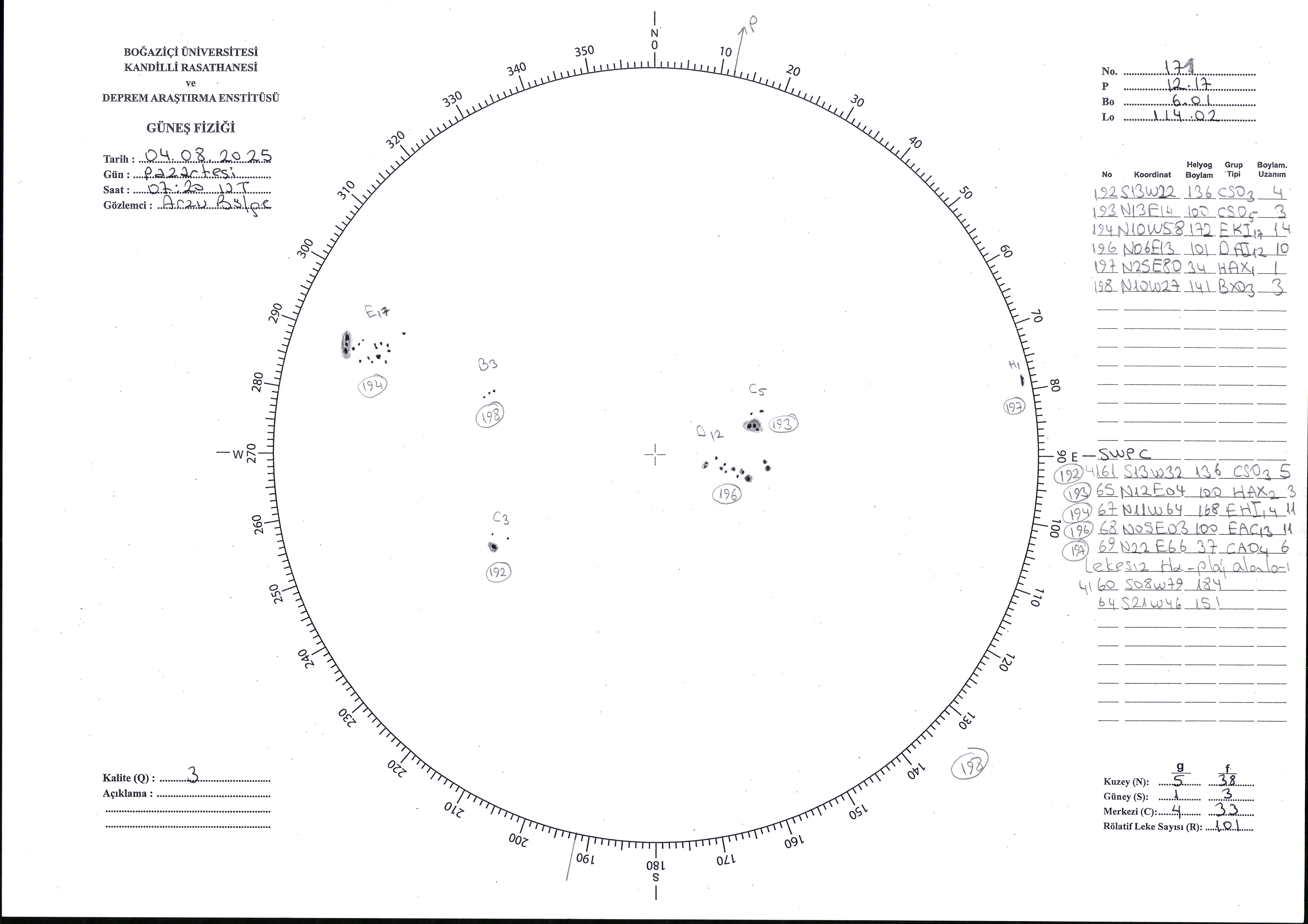 Güneş Lekesi Çizimi - 04.08.2025