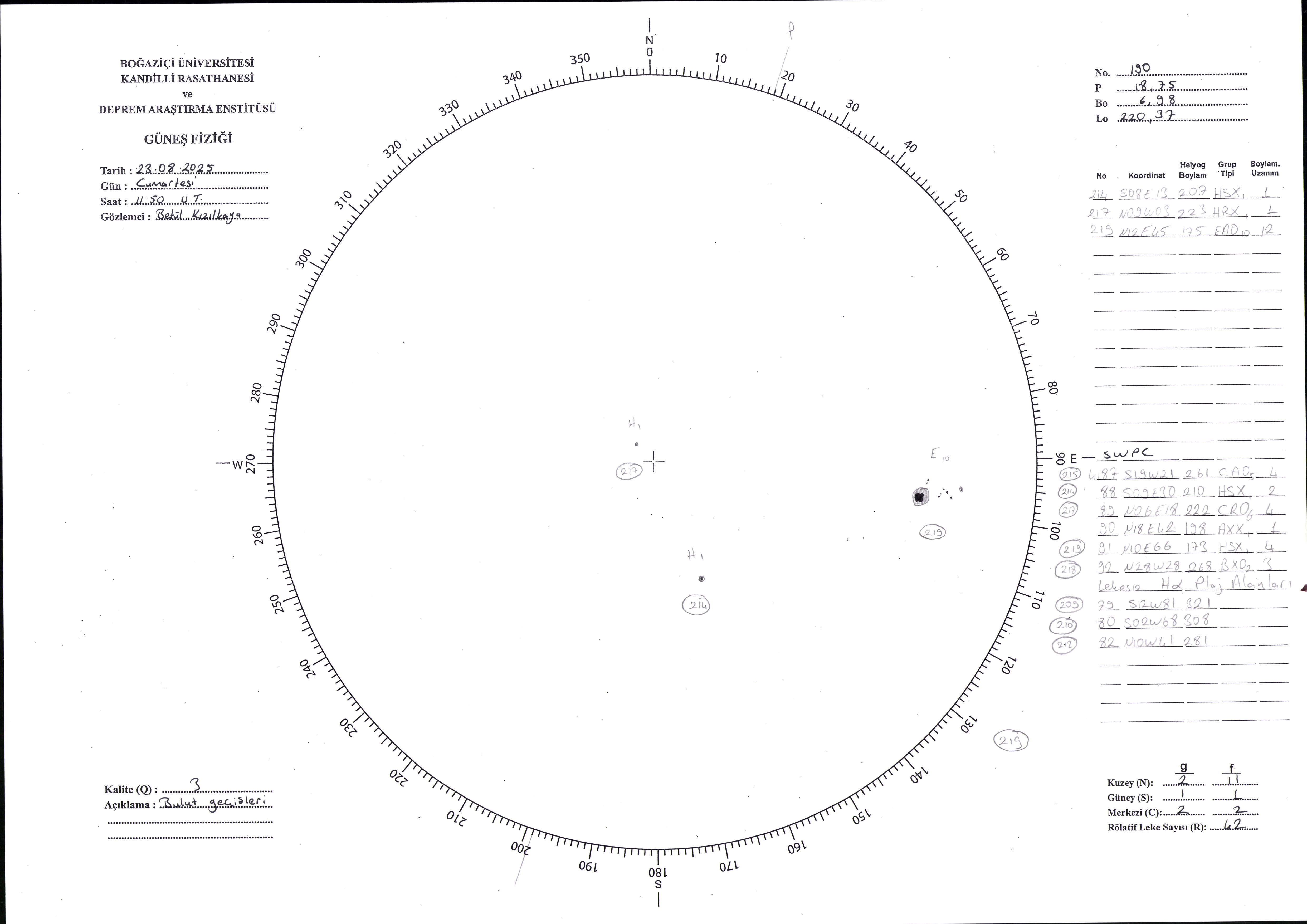 Güneş Lekesi Çizimi - 23.08.2025