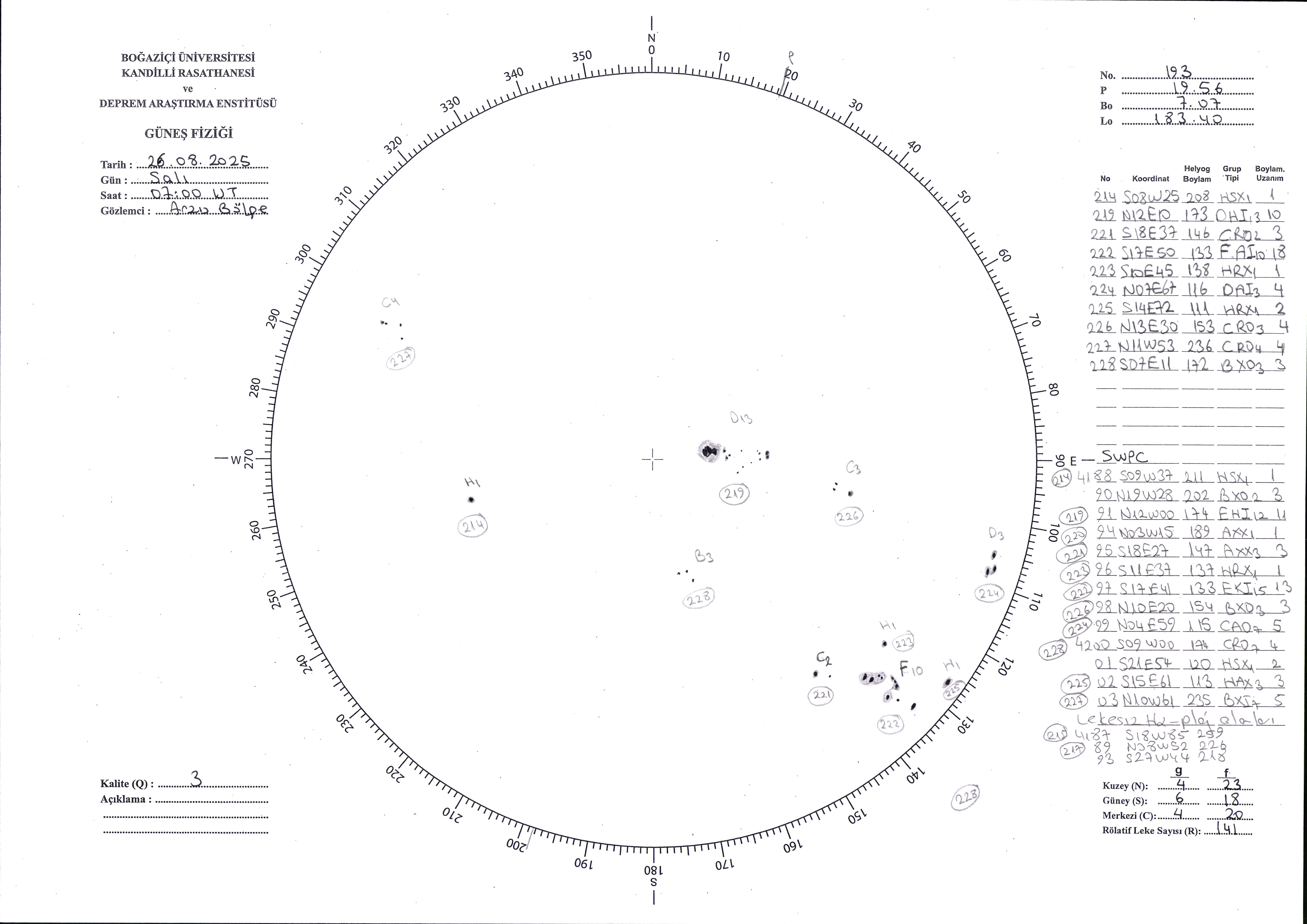 Güneş Lekesi Çizimi - 26.08.2025