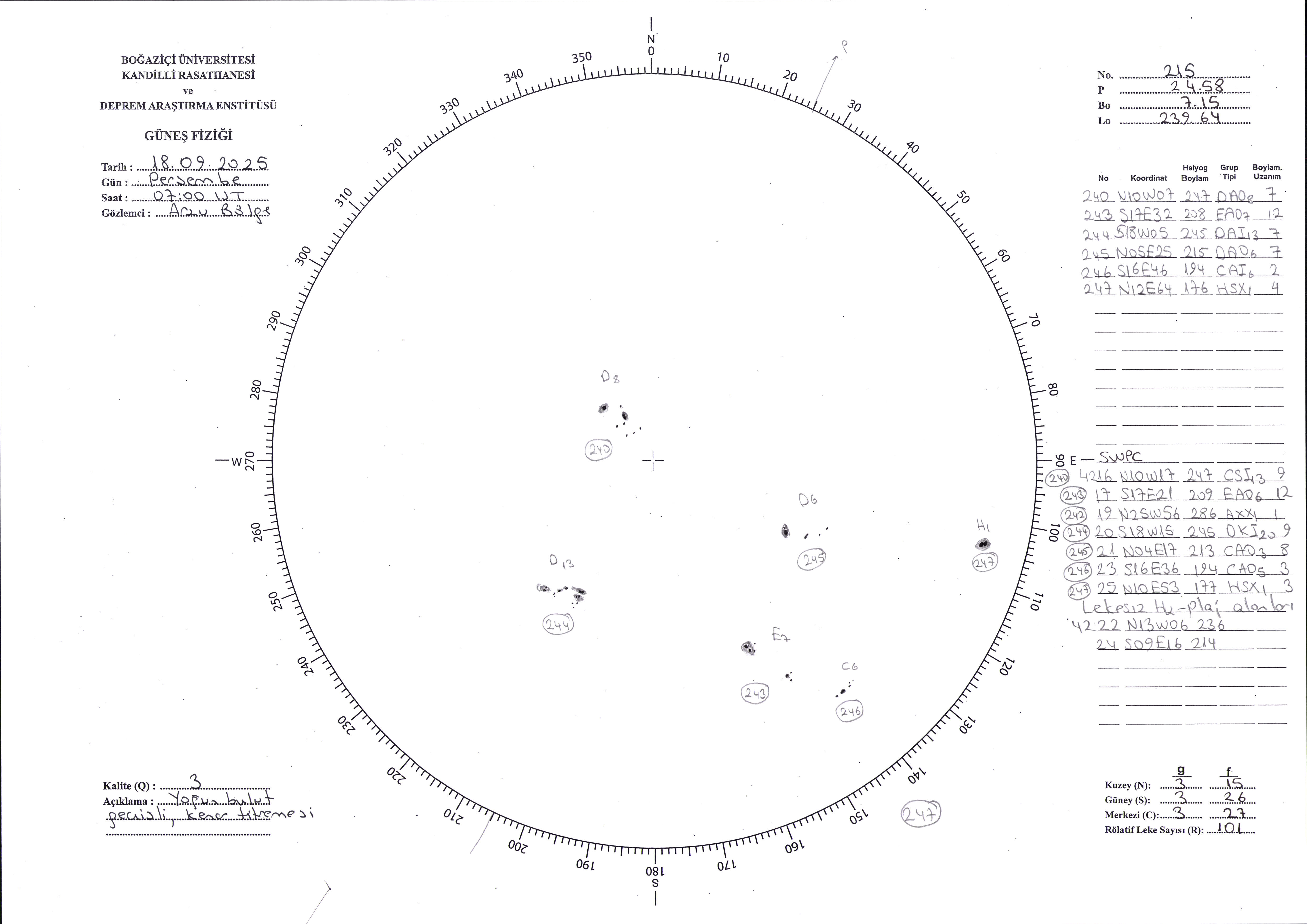 Güneş Lekesi Çizimi - 18.09.2025