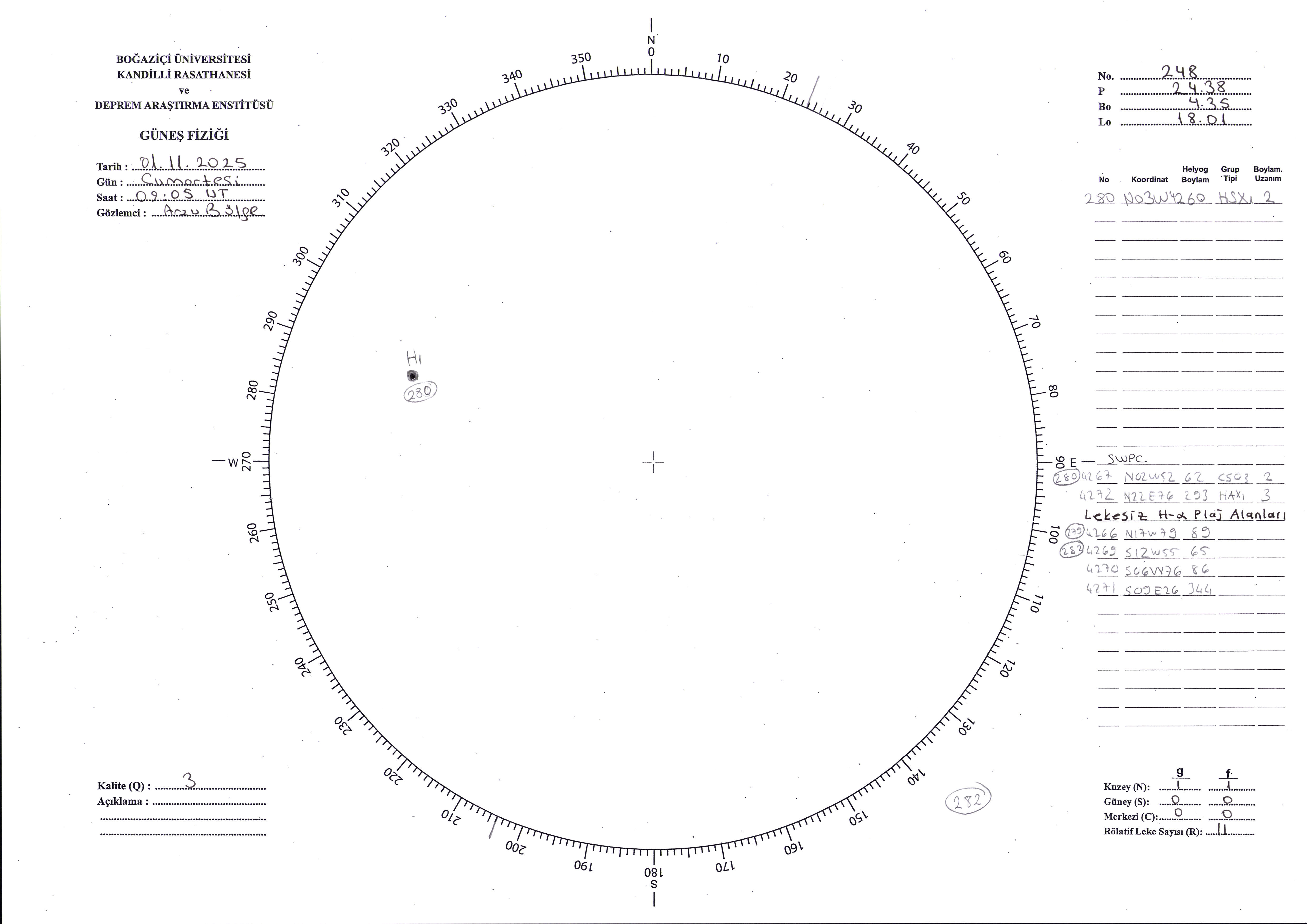 Güneş Lekesi Çizimi - 01.11.2025