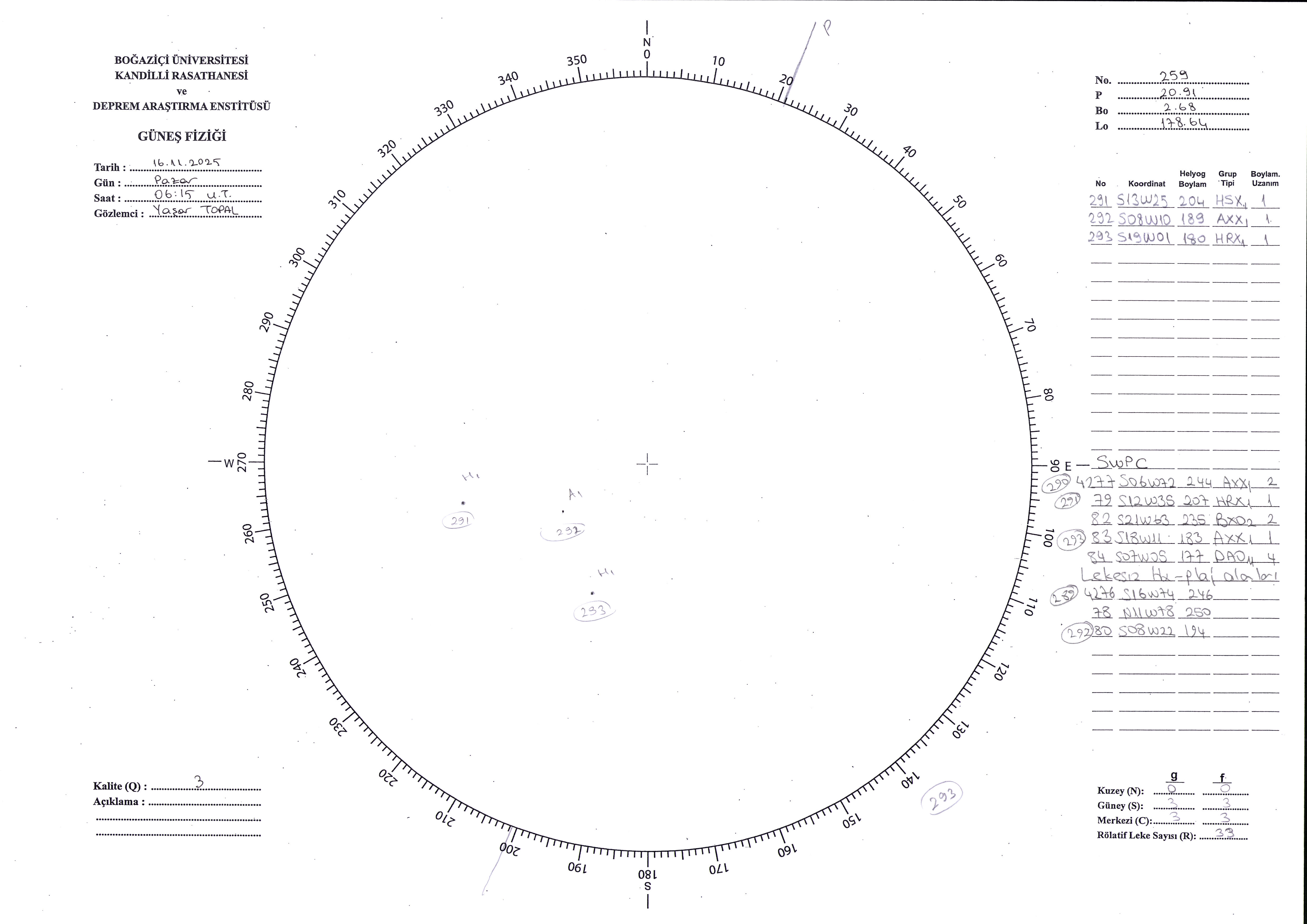 Güneş Lekesi Çizimi - 16.11.2025