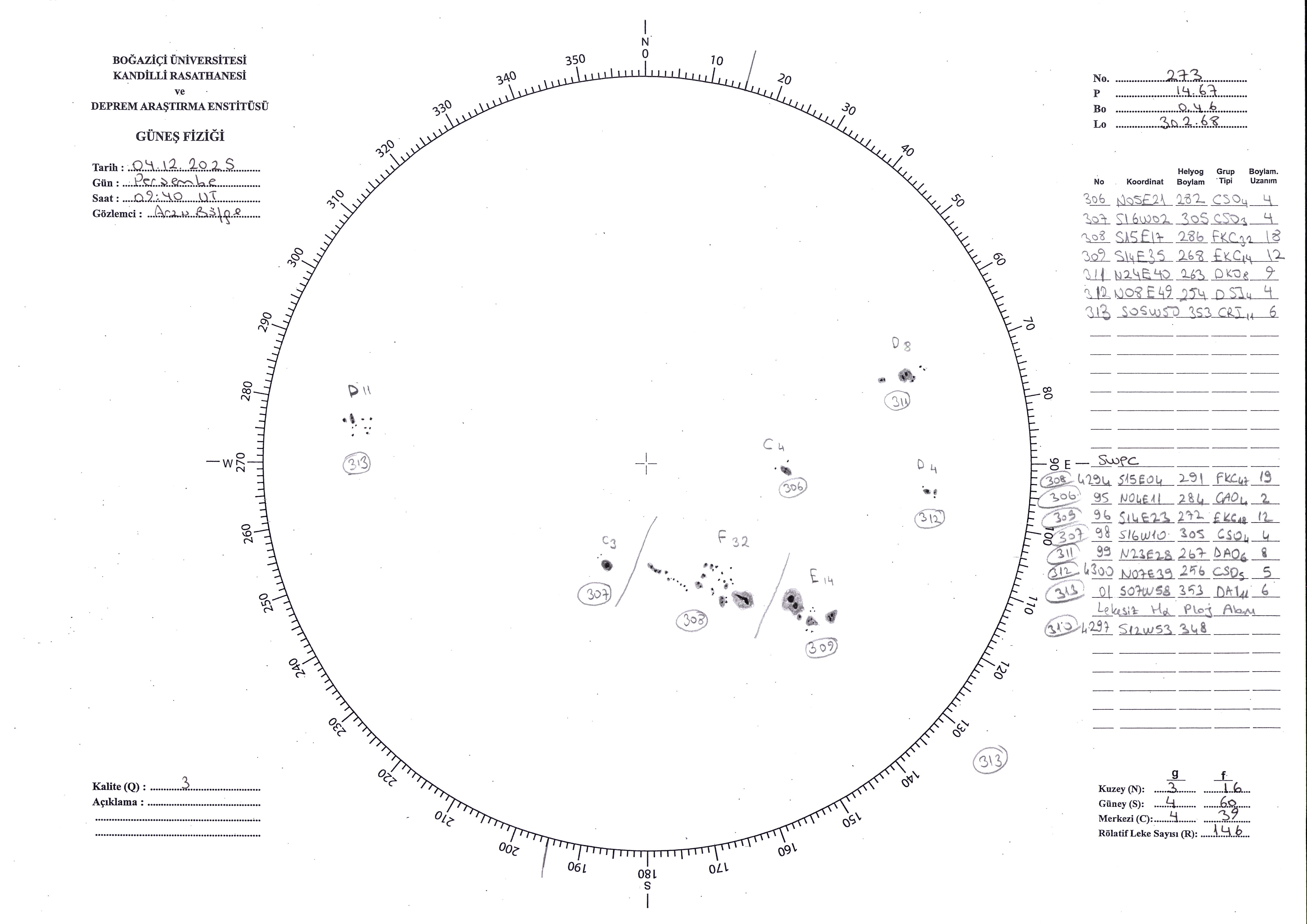 Güneş Lekesi Çizimi - 04.12.2025