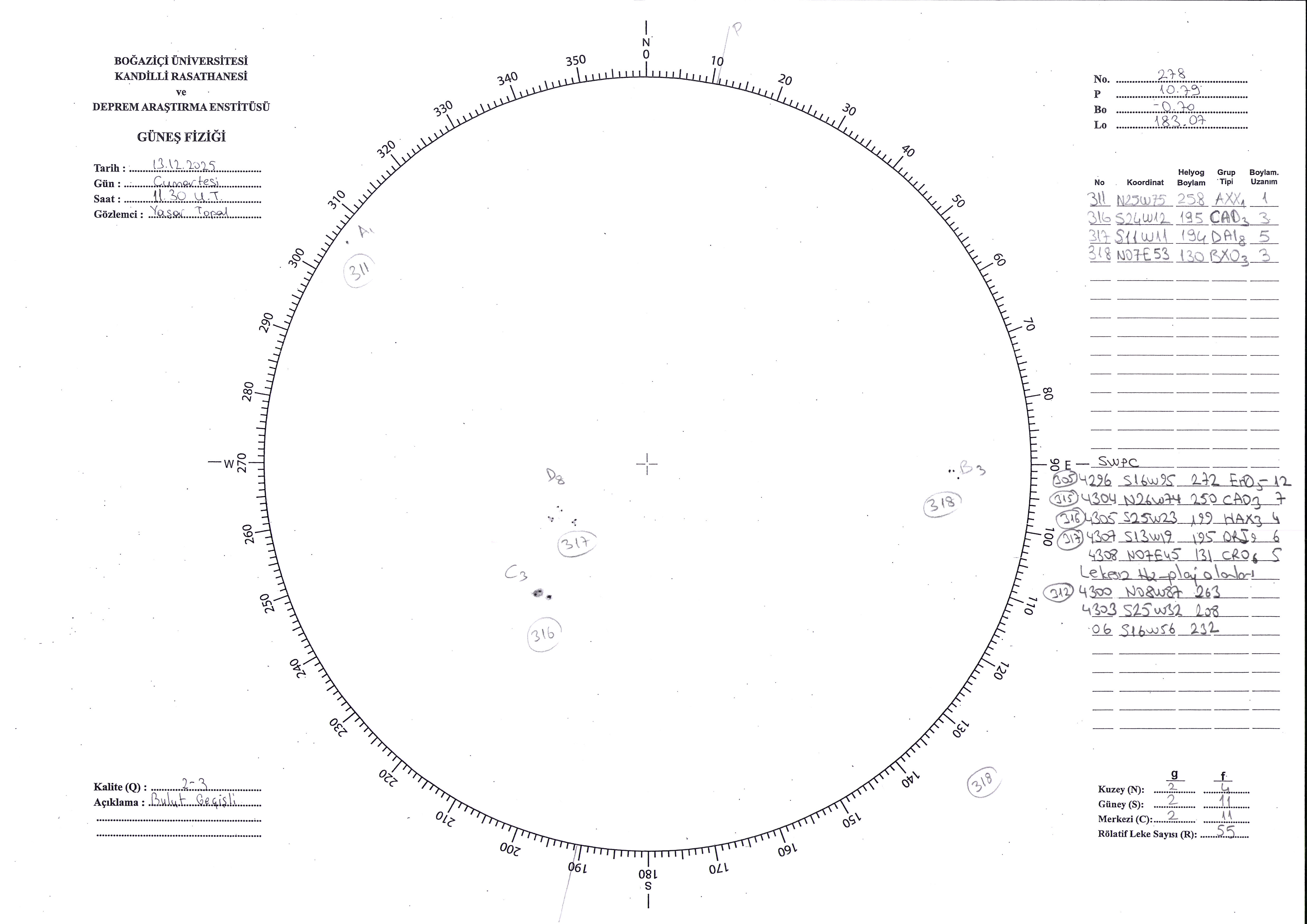 Güneş Lekesi Çizimi - 13.12.2025