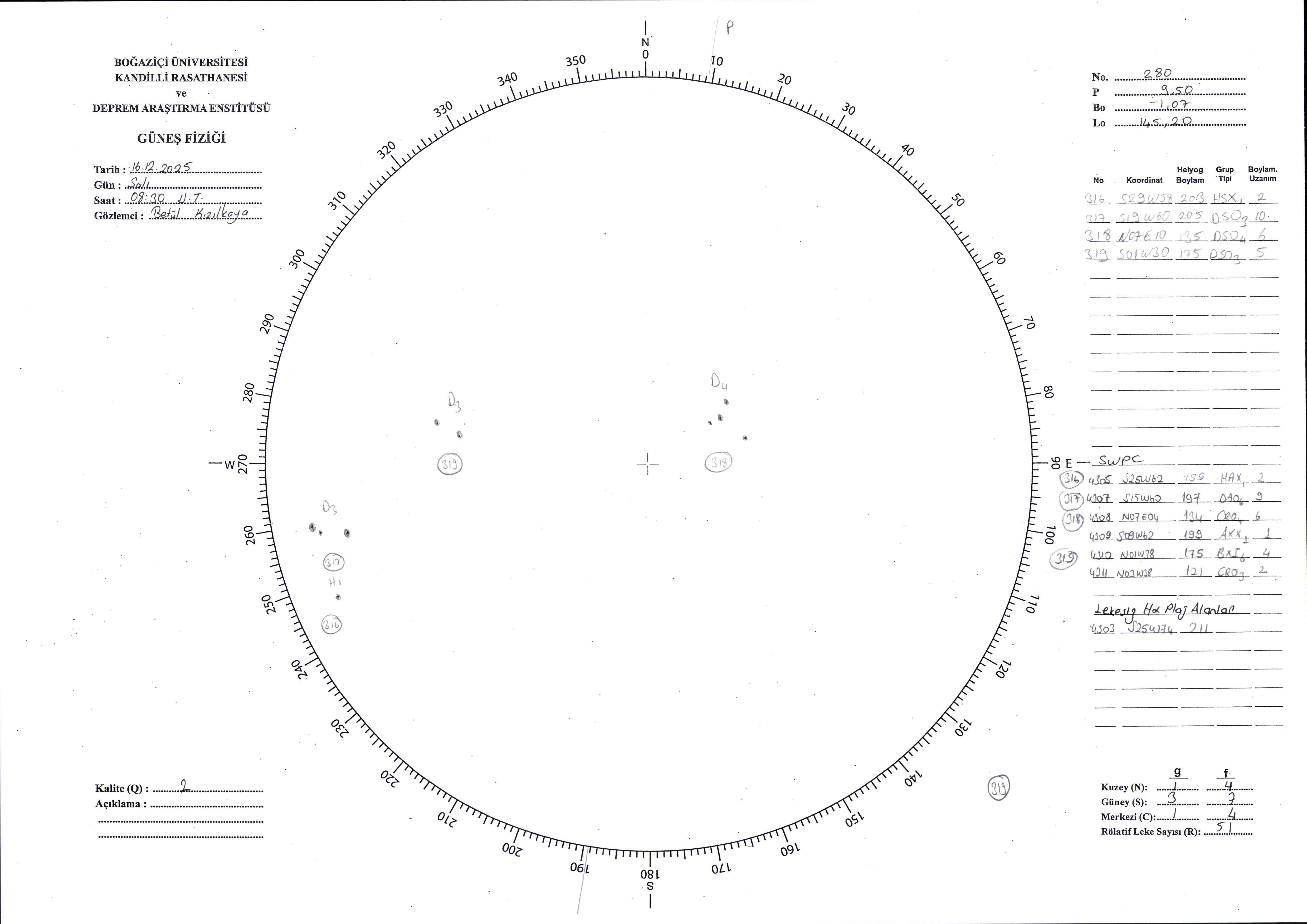 Güneş Lekesi Çizimi - 16.12.2025