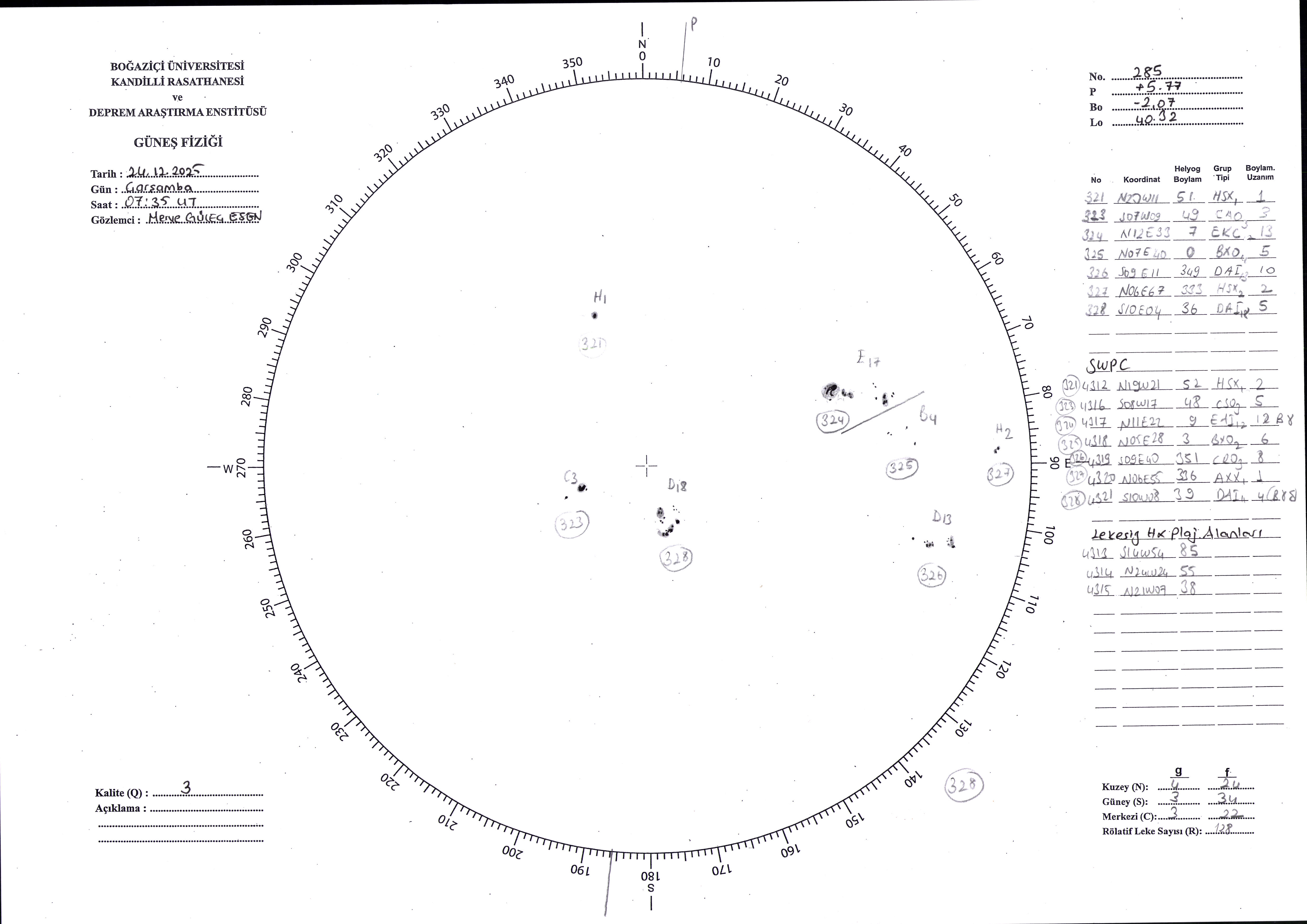 Güneş Lekesi Çizimi - 24.12.2025