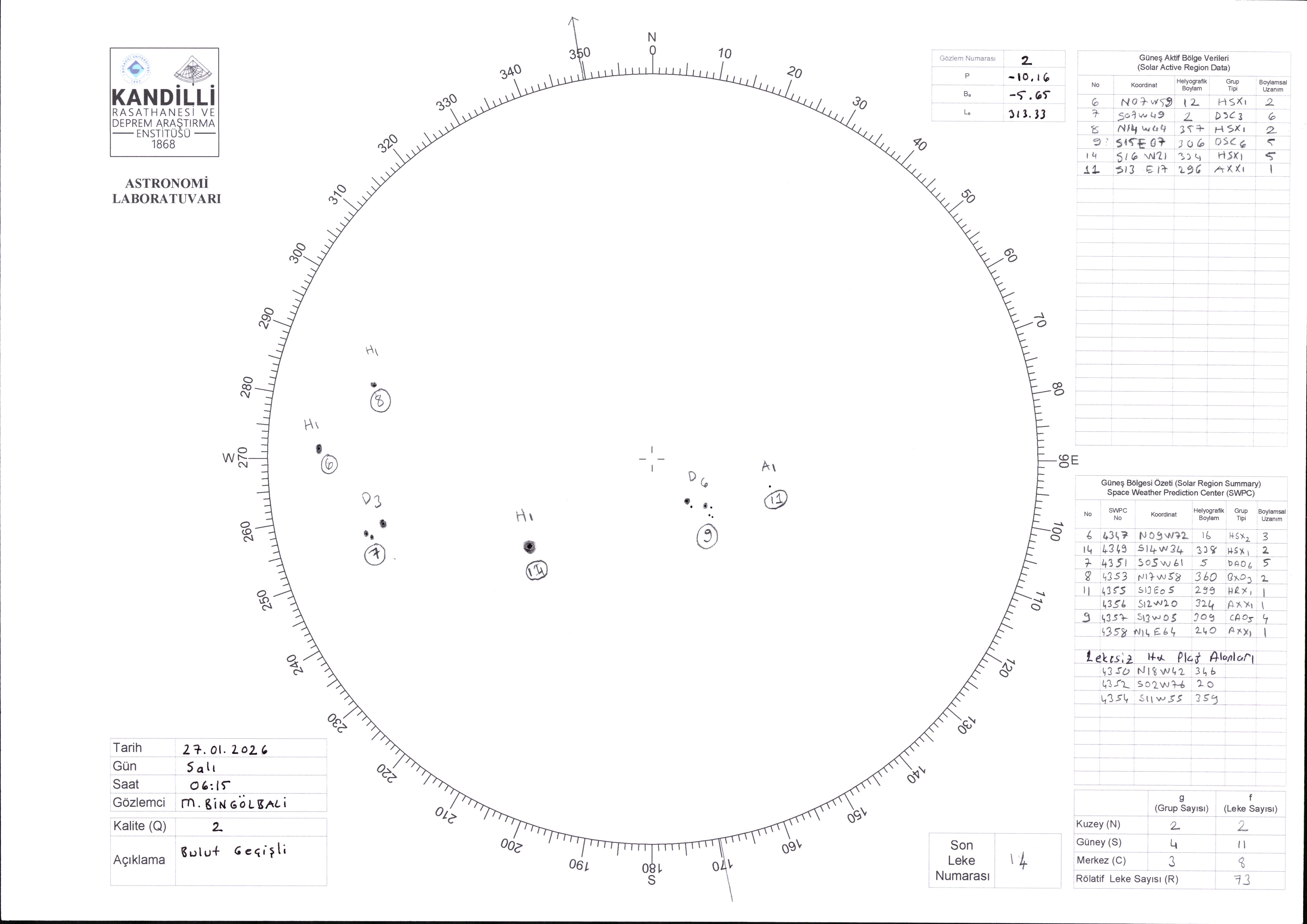 Güneş Lekesi Çizimi - 27.01.2026