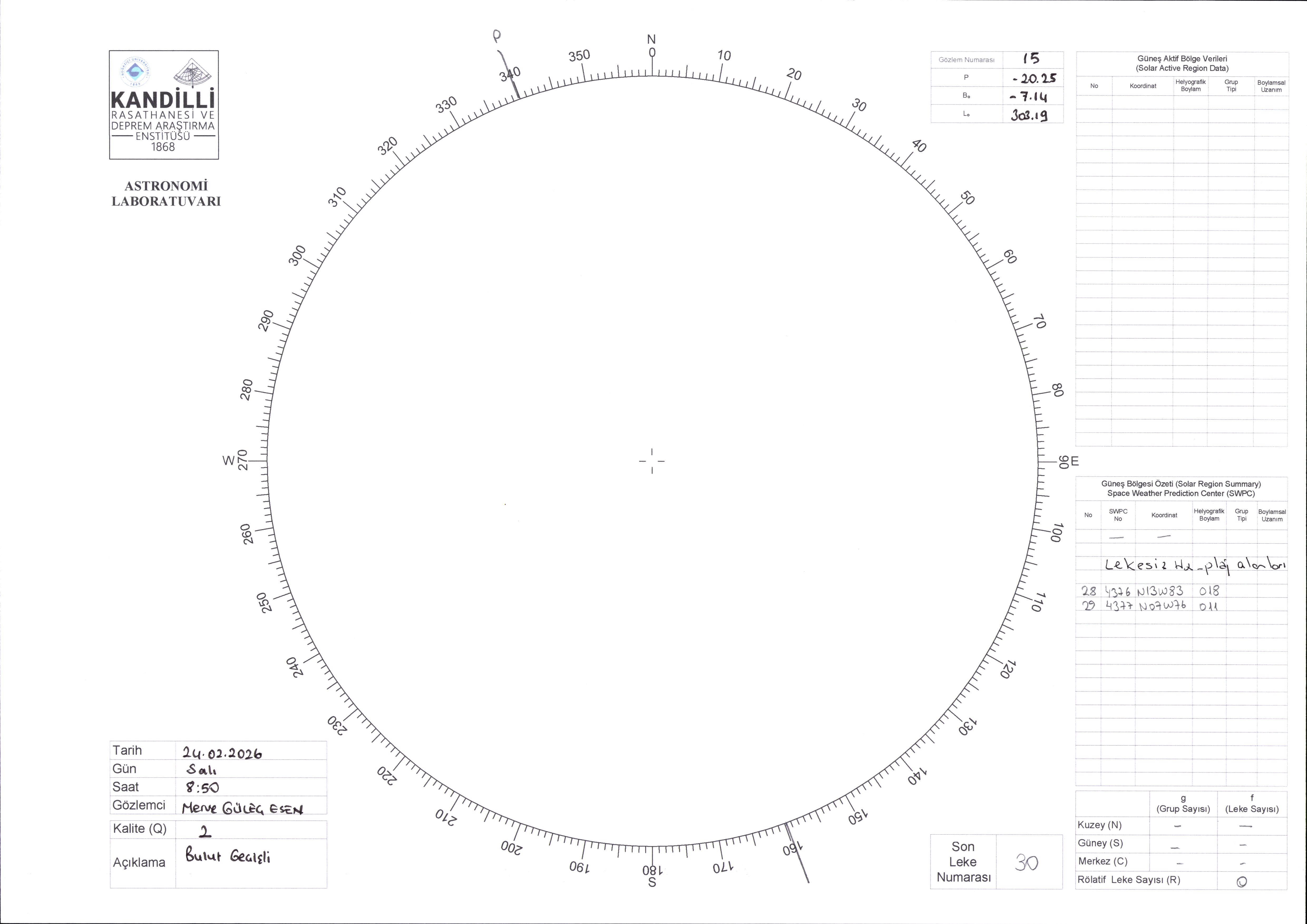Güneş Lekesi Çizimi - 24.02.2026