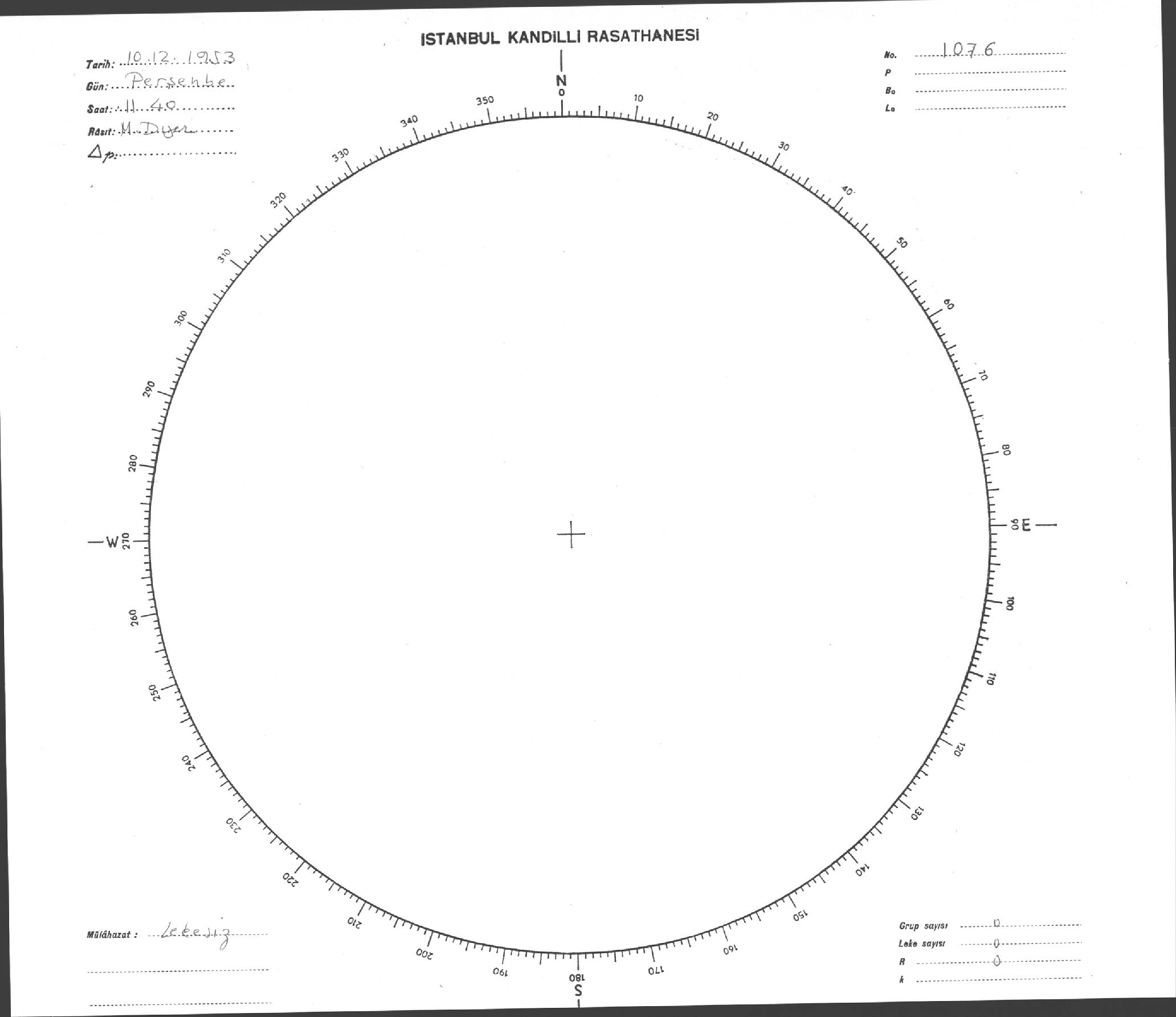 Güneş Lekesi Çizimi - 10.12.1953