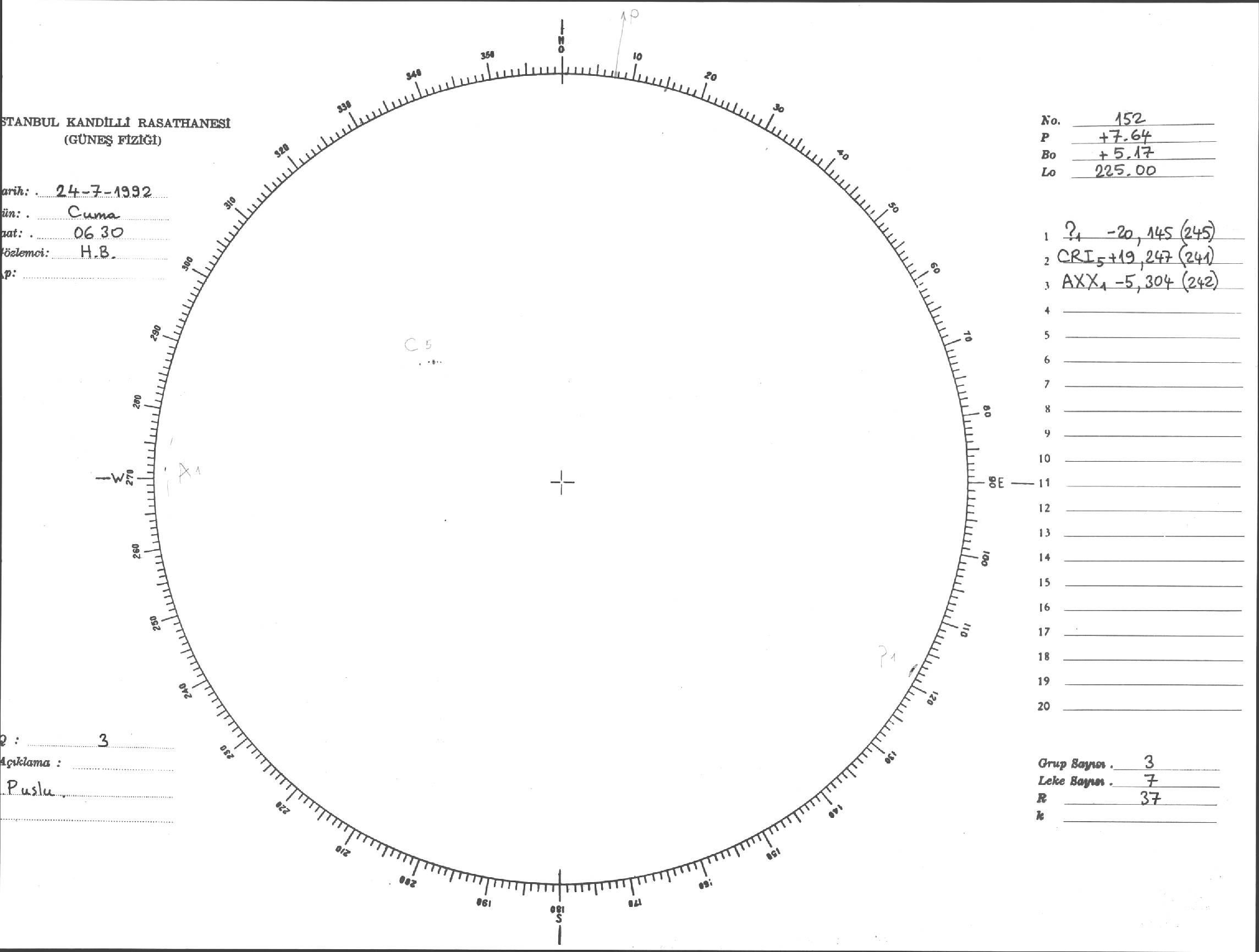 Güneş Lekesi Çizimi - 24.07.1992