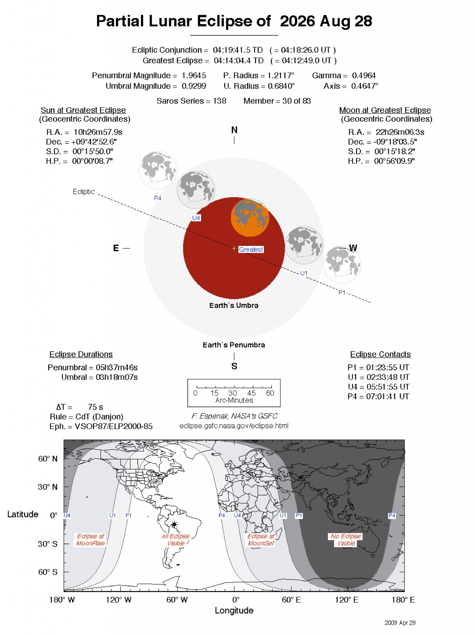 28.08.2026 Yarı Gölgeli Tutulmanın Başlangıcı 04:24:29.0 Parçalı Ay Tutulmasının Görülebileceği Yerler: