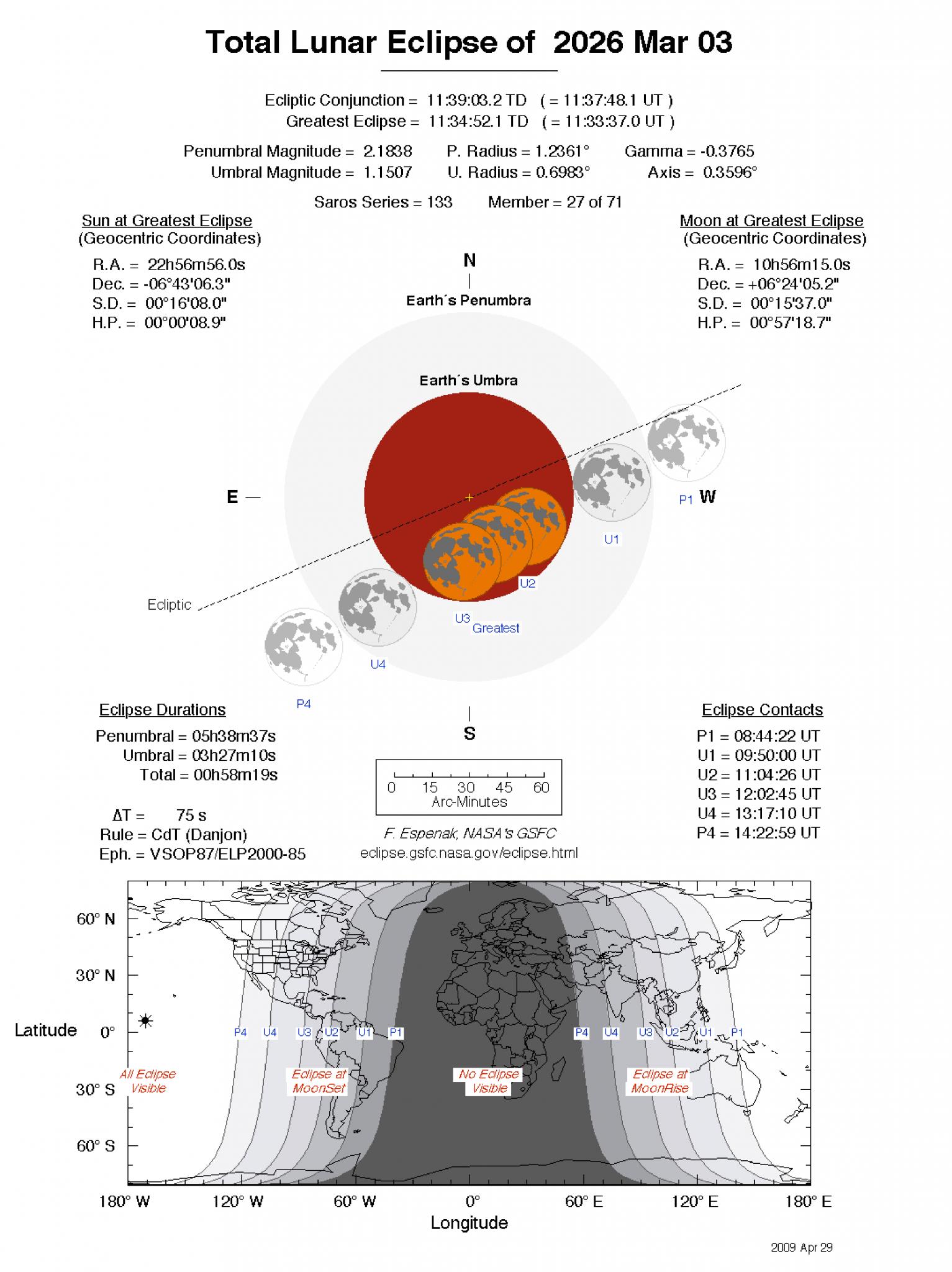 3.03.2026 Yarı Gölgeli Tutulmanın Başlangıcı 11:43:57.6 Ay Tutulmasının Görülebileceği Yerler: